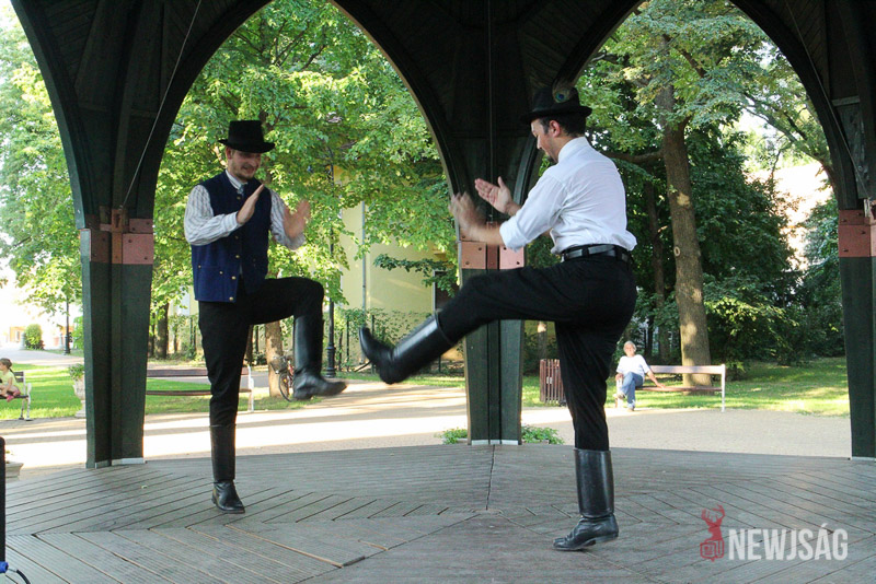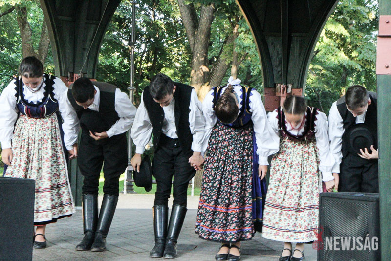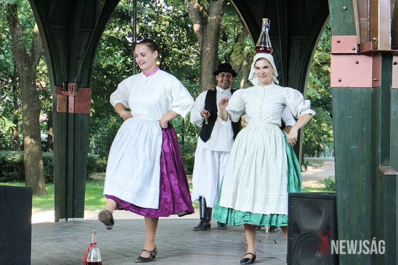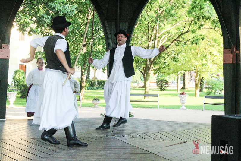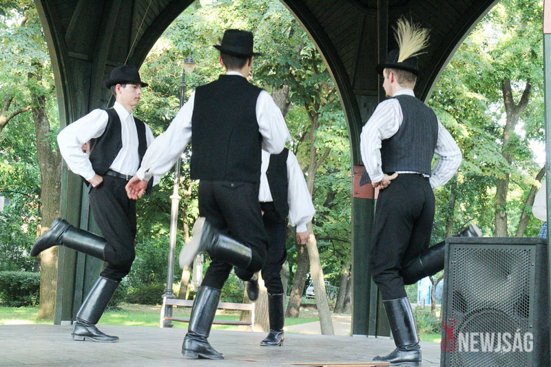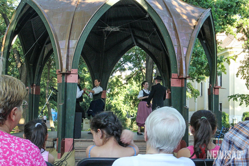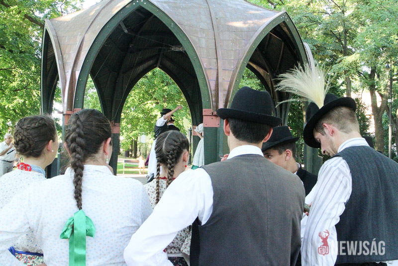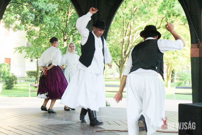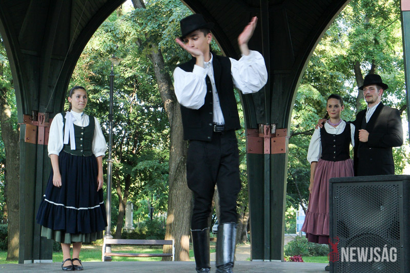 Mit sem törődve a tikkasztó hőséggel, a Tessedik Táncegyüttes táncosai réteges népviseletbe bújtak, és derekasan helytálltak a Zenepavilon színpadán. Az együttes kamaracsoportja egy csokorra valót gyűjtött össze július 22-én azokból a táncokból, amelyeket az egy hónapja tartott tehetségtáborban sajátítottak el.