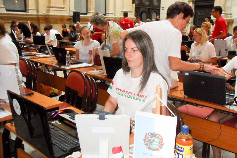 Megtiszteltetés volt számunkra, hogy ketten (Hornok Edina és Tóthné J. Erzsébet) a szervezőbizottságban is dolgozhatott, kivették részüket a hosszan tartó, bonyolult előkészítő munkában, ott voltak a rendezvény minden mozzanatánál. Az eredményhirdetésen a díjátadásban is közreműködtek, megható volt a csaknem 600 emberrel szemben állva átadni a legjobbaknak az érmeket. Annál is inkább, mert gyorsírás kategóriában a dobogó mindhárom fokára magyar versenyző állt (Ferenc Zsuzsa, Vicai Erika, Árvayné Dani Judit).