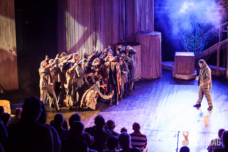 A háttérben táncolók, éneklők egy-egy mondatot játszó fiatalok nélkül nem lehetett volna ilyen mozgalmas az előadás. A szinte végig színpadon lévő farkasok, majmok, keselyűk, emberek: Balog Richárd, Biró Gyula, Daragó Gábor, Farkas Boglárka, Gábor Anita, Georgiu Hermina, Kopornyik Réka, Litauszki Enikő, Mlinár Pál, Mlinár Péter, Ormándy M. Keve, Rigler Renáta, Szombath Gergő, Tatár Bianka/Török Tünde, Terhes Edina, Drahota Albert szh., Földes Roxána szh., Harcsa Boglárka szh., Janis Zoltán szh., Kinyik Flóra szh. (forrás: www.vizsinhaz.hu)