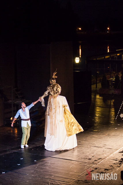 Nagyon tetszett a fény – árnyjáték, ami a mese világát nagyszerűen árnyalta. A fénytervet Komoróczky Gábor készítette. Nem értettem, miért este adják elő, hiszen kisebb gyermekeknek szólt, így a korábbi kezdés lett volna célszerűbb. Végül választ kaptam: az előadásnak fontos része volt a fényekkel, árnyékokkal való játék, amelyek napfényben nem érvényesültek volna.
