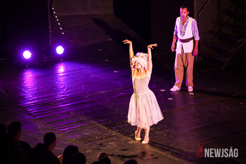 2013-ban az Újvidéki Művészeti Akadémia végzős magyar színészosztálya, kilenc fiatal színművész együtt maradt, és Zentán állandó színtársulatot hozott létre. Az elmúlt évben Szabó Magda Sziget-kék című meséjét hozták el Szarvasra, amelyért a „Legjobb ifjúsági előadás” díját vehette át a színház igazgatója. Vasárnap este egy újabb mesét, Lázár Ervin: A legkisebb boszorkány című novellájának adaptációját hozták el. Most is kilenc fiatal volt a színpadon, – többen több szerepet alakítottak, – de az elmúlt évhez képest két új névvel is találkozhattunk.