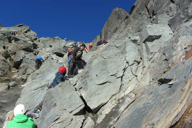 – Először átlépni a magashegyi határt nehéz volt, kicsit szédültem, de azt másnapra kipihentem. Korán reggel négykor keltünk és ötkor már indultunk is, mert délutánra már nagyon megolvad a gleccser és egész patak folyik az úton. Egy elég nehéz túra volt, mert először a gleccseren mentünk, majd sziklás részeken, ahol egymást kellett biztosítanunk kiálló vas cölöpökön. A gleccseren mászni ilyenkor nem veszélytelen. Három hete lecsúszott rajta két hegymászó, mert nincs rajta ilyenkor hó.