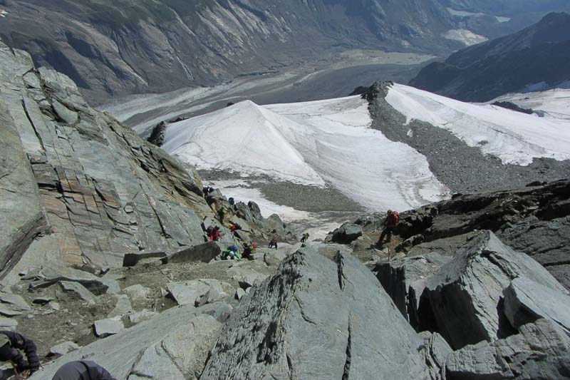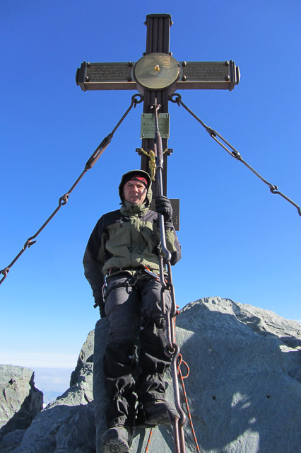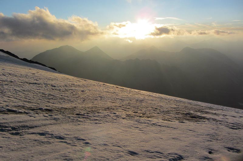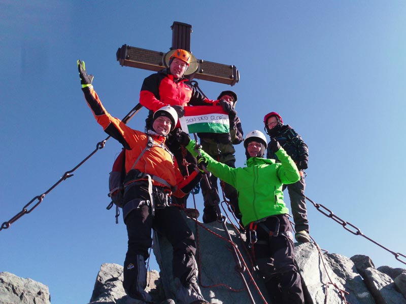 A hajnali négyes kelést kárpótolta a féltízes érzés, amikor felállhatott a 3798 méteres Gross Glockner csúcsára, mondta Előd. A látványban való gyönyörködés után egyhuzamban ereszkedtek vissza az 1900 méteren levő parkolóig. Ez az újabb 1900 méteres szintkülönbség kb. azt jelenti, hogy 190-szer lesétálunk a Vízi Színház tetejéről a színpadra.