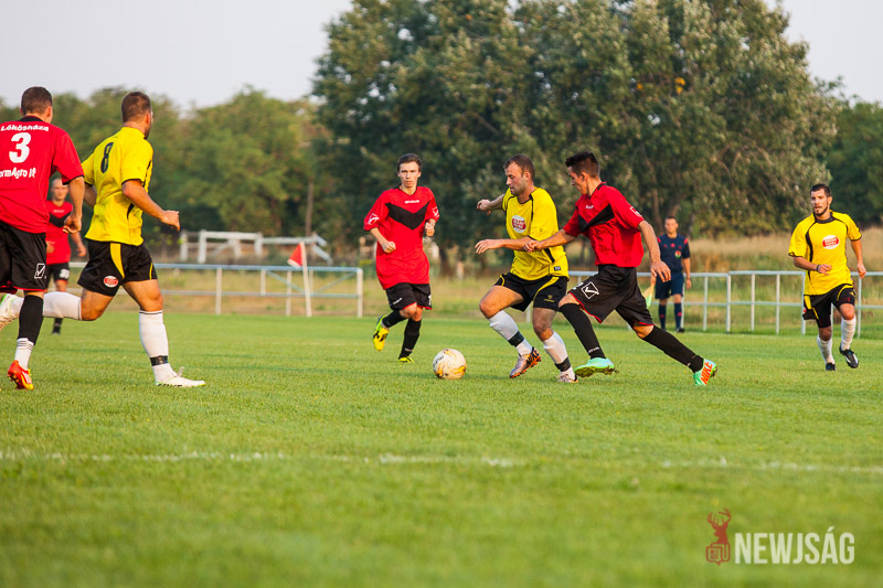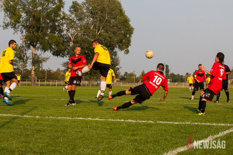 Varga László meglepő taktikával állította fel csapatát a nyitómérkőzésre. A tavalyi gólvágók közül Tóth Attilát és Lovas Attilát a kispadon pihentette az első félidőben és egy előretolt ékre, Virág Imrére bízta támadások szervezését. A 10. percben, mikor a lőkösházi Puporka Elemér egy kontrából bevette Légrádi Attila hálójaát, úgy nézett ki, hogy lehet, át kellene gondolni. Szerencsére nyolc percre rá a hazaigazolt Borgulya János szép fejessel javított, majd alig 10 percre rá Virág Imre a 11-es magasságából jobbal bevette Kurta Lajos kapuját. Ezzel a 2-1-es hazai vezetéssel mentek a csapatok a félidei pihenőre.