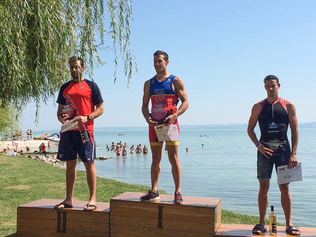 A verseny viszont elég jól sikerült. Az úszás során az egyéniek között második helyen jöttem ki a vízből a 750 m-es távon. A kajakozásom nem volt egy sprint szám, a célom az volt, hogy ne boruljak ki. Ezen az 5 km-es távon nagyon sokat kaptam és visszaestem a hetedik helyre. Gondoltam magamban elég izmosat kell tekernem, ha a dobogóért akarok küzdeni. Nem spóroltam, úgy nyomtam neki, ahogy csak tudtam. A kerékpáros pálya roppant egyszerű volt, 10 km föl, 10 km le. Sikerült bejönnöm a harmadik helyen, viszont elég rendesen elkészültek a lábaim, így a futó számom gyengére sikerült és 38 mp hátránnyal a harmadik helyen értem célba két Spanyol versenyző mögött, a legjobb Magyarként.