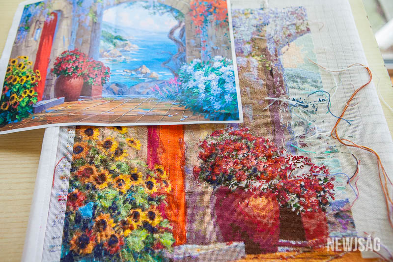 42 szorgos női kézpár forgatta a tűt azon az augusztus végi szombaton, amikor a szarvasi Gobelin Hímző és Kézimunkaszakkör rendezte idei táborát egy augusztus végi hétvégén.