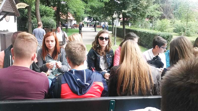 Két csoportban egy-egy idegenvezető kíséretében néztük meg a nemrég felújított, kitűnő állapotban pompázó várat. A magyar idegenvezető nagyon jó humorral ismertette a vár történetét egy-egy anekdotával fűszerezve. Beülhettünk a nagyterembe, megnézhettük hol és hogyan éltek a vár úrnői, hogyan védekeztek a vár lakói az idegen támadásokkal szemben. De legmegdöbbentőbb termek – ahová néhány tanuló, velem együtt -, be sem mert menni, a legkegyetlenebb kivégző és kínzó szerszámokat bemutató termek voltak. Most már megértettük, miért is volt sötét a középkor!