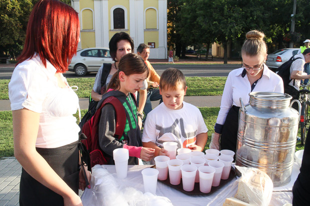 – Eddig több mint háromszáz főt láttuk vendégül – számol be a tapasztalatokról Krivik Viktor. 6 és 7 óra között csak elvétve szálingóztak, és nem igazán álltak meg, utána azonban nagyon sokan fordultak meg nálunk. Egy részük rácsodálkozott a programra, nem voltak tisztában az időpontjával, így kellemes meglepetésként érte őket a fogadtatás.