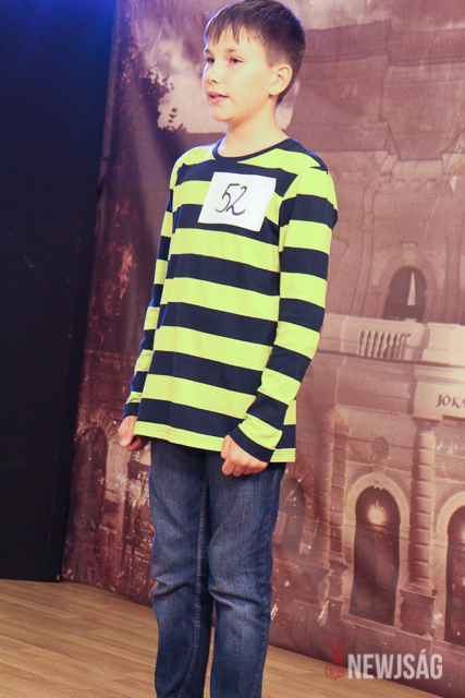 – Először el kellett énekelnem egy általam választott dalt, utána egy népdalt, miközben fel-alá kellett járkálni. Kérésre egy izgalmas történetet és viccet is meséltem, végül pedig a Nemzeti dal első versszakát szavaltam el. Eléggé izgultam, de azért szerintem jól ment – újságolta a megmérettetést követően a 11 éves tehetséges fiatal még mindig kissé lámpalázasan.