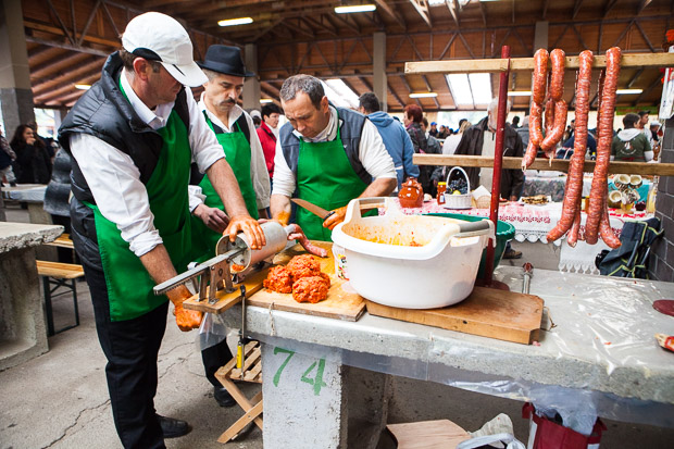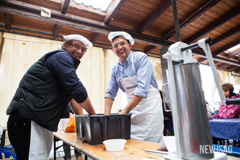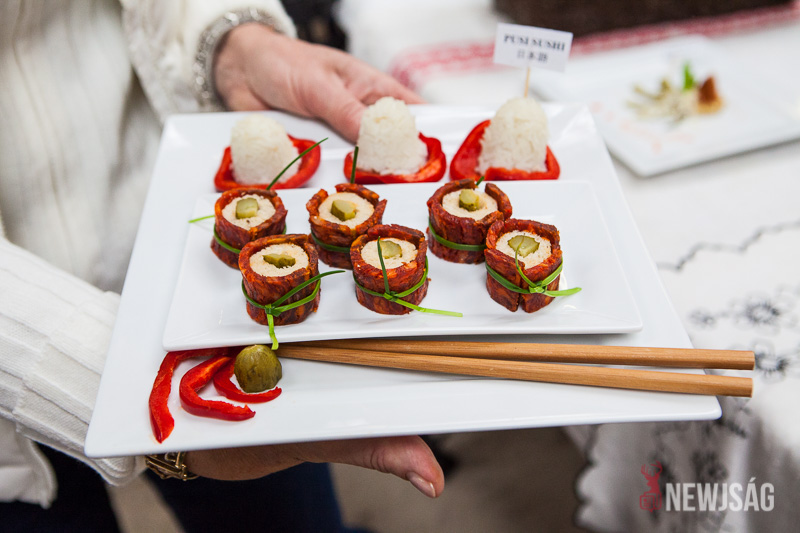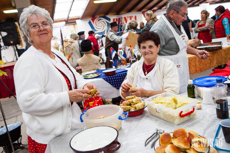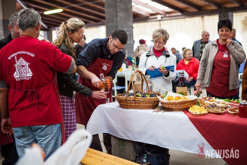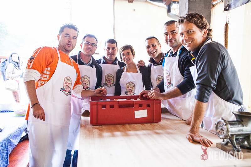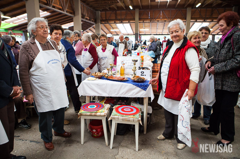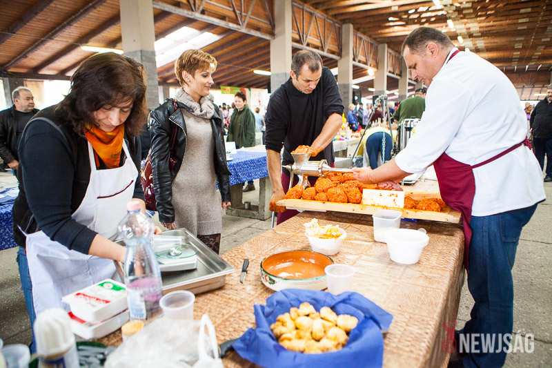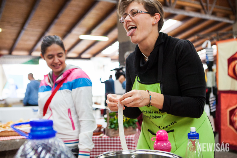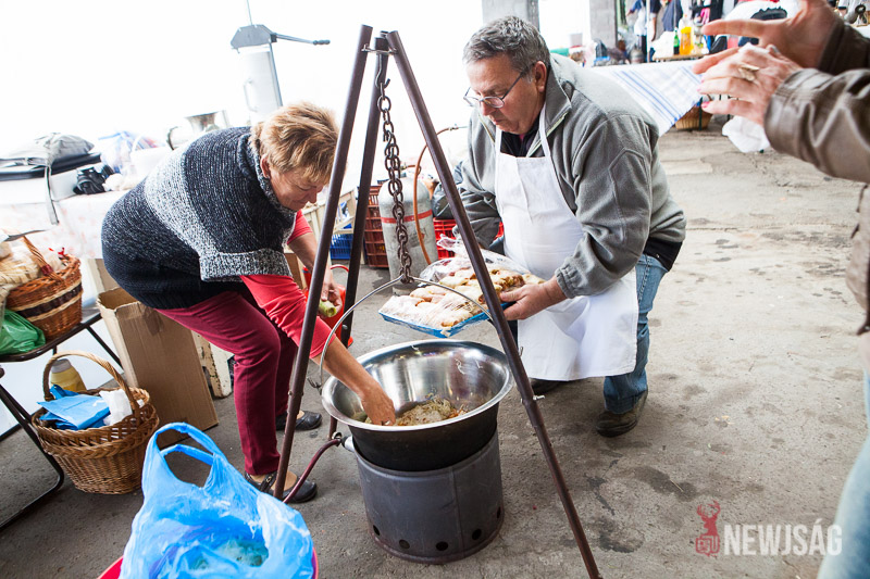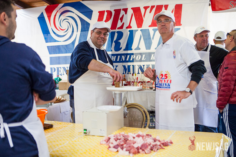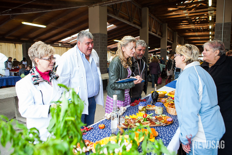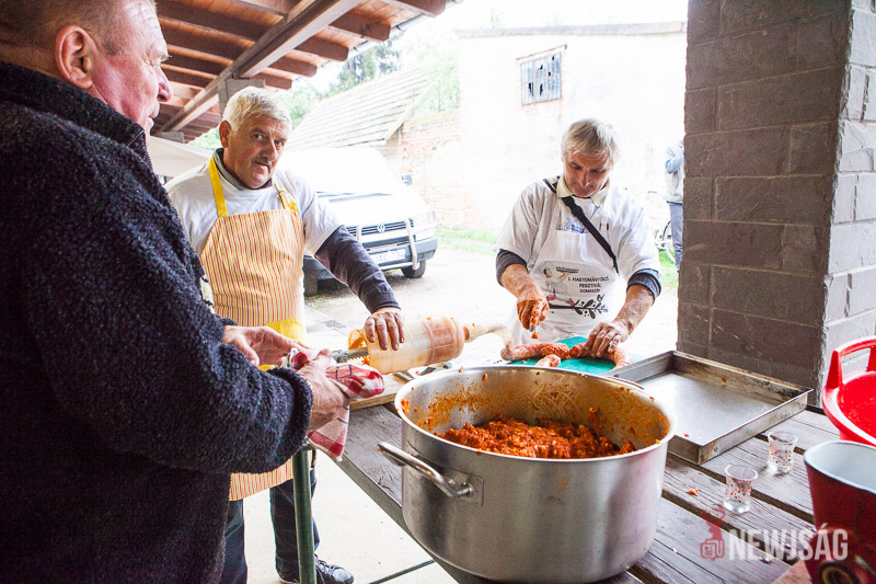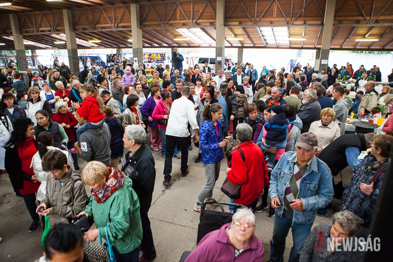 Kilencedik alkalommal rendezte meg Szarvasi Gazdák Nemzetiségi Hagyományőrző Egyesülete az idénynyitó disznótort Szarvason. Az esemény az időjárás szeszélyeit semlegesítő otthonra talált az évek során a fedett piaccsarnokban. Az óvatosságnak az idén is helye volt, mert októbernek megfelelő hőmérséklet mellett lógott az eső lába. Az időjós is arra figyelmeztetett, hogy a délutáni eső a jövő héten áll el. Ebben szerencsére egy félnapnyit tévedett, de az elázásra nem is az eső jelenti az elsődleges kockázati tényezőt egy ilyen rendezvényen, hanem a fogópálinka. Abból pedig volt bőven, ugyanis a töltött káposzta főző és kolbászkészítő verseny kísérőiként csapatok megmérettetik magukat a disznótoros süteményekkel és a pálinkáikkal is.