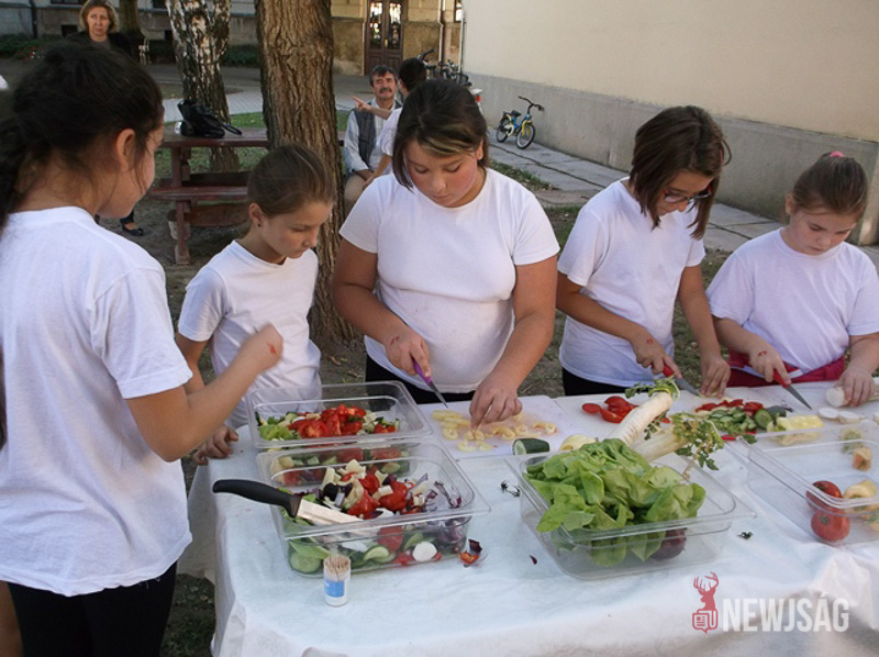 Sportolással hangolódtunk az előttünk álló mulatozásra, eszem-iszomra. Mustoló-kupa utcai futóversenyünk alaposan megmozgatta és bemelegítette a diákokat, hogy aztán az udvaron különféle sportágakkal és az egészséges életmóddal ismerkedhessenek játékos formában. Majd a szombati napon intézményünk igazi nyüzsgő sokadalmat látott vendégül. Kora reggeltől szorgoskodtak a szülők, nagyszülők, gyerekek és pedagógusok, hogy elkészüljenek a hagyományos magyar bográcsos ételek. Gyönyörű terítékkel és szíves vendéglátással kápráztatták el a gasztronómiai zsűrit, amely csak hosszas tanakodás után tudott eredményt hirdetni. Nem volt könnyebb helyzetben a másik zsűri sem, amely az idei év kreatív feladatát, az óriás állatbábokat értékelte. Túlzás nélkül állítható, hogy ehhez fogható eredeti, ötletes, jól kivitelezett alkotások még nem születtek a Mustoló történetében. A feladat aktualitását a közelgő Állatok Világnapja adta, így az óriásbábok jövő héten is megtekinthetők intézményünk udvarán.