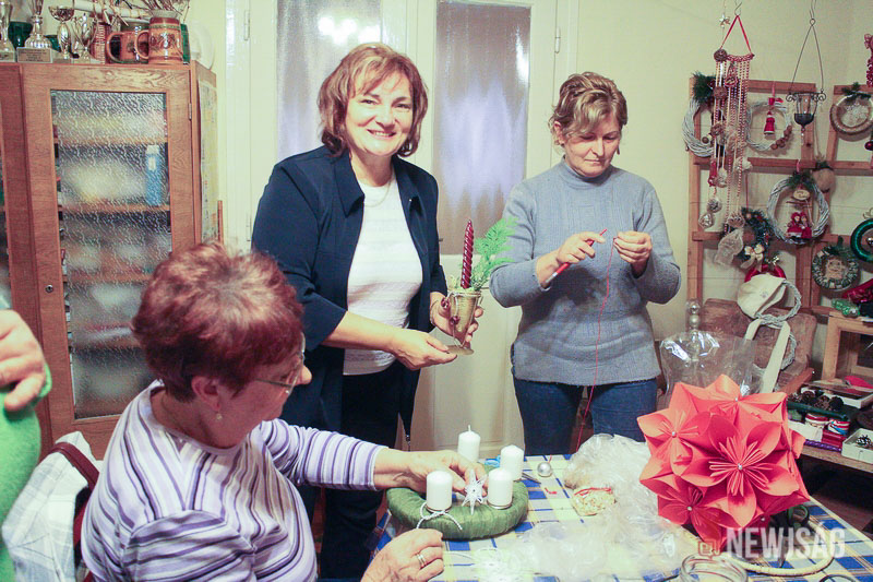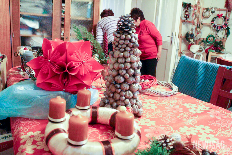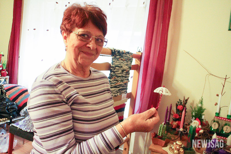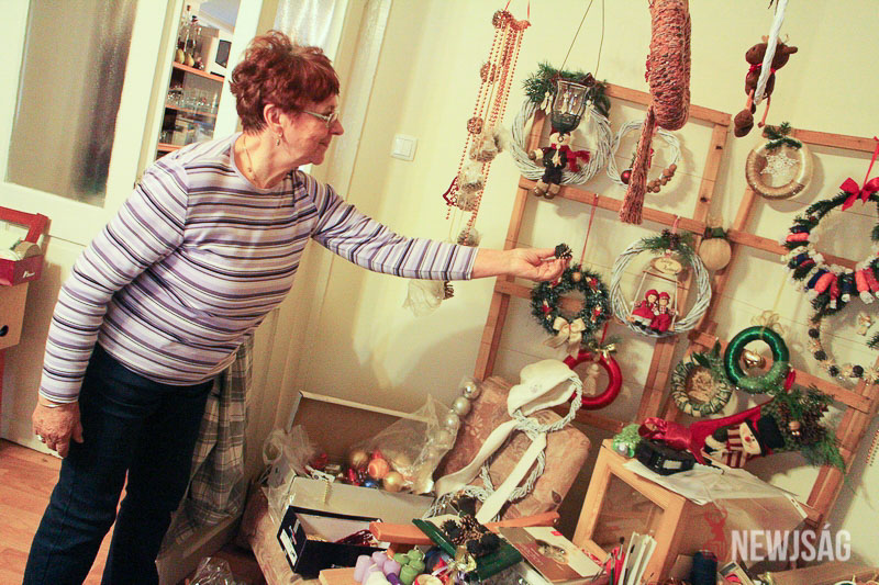 A csapat lelke Koltai Lajosné Rózsika néni, akinek egész évben ott lebeg a gondolataiban az ünnep. Év végére ugyanis mindig legalább 150 apró, horgolt díszt varázsol elő a tarsolyából, köztük mindig új ötletekkel. Idén pl. az esernyőt és a gyertyatartót is felvette a repertoárjába, amellett, hogy maradtak az örök klasszikusok: a csillagok, harangok és az angyalkák.