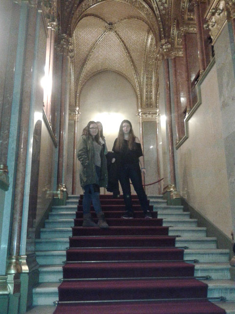 Belépve az épületbe pazar látvány fogadott minket. A hosszú lépcsősorra vörös szőnyeget terítettek, a legtöbb fal márvány-és aranyborítást kapott és több festményt és szobrot csodálhattunk meg. Az Országházat méltón sorolják a világ legszebb parlamentjeinek sorába. Utunk során megtekintettük a XVII- es lépcsőházat, a Kupolacsarnokban őrzött Szent Koronát, a Felsőházi társalgót, és a Felsőházi üléstermet.