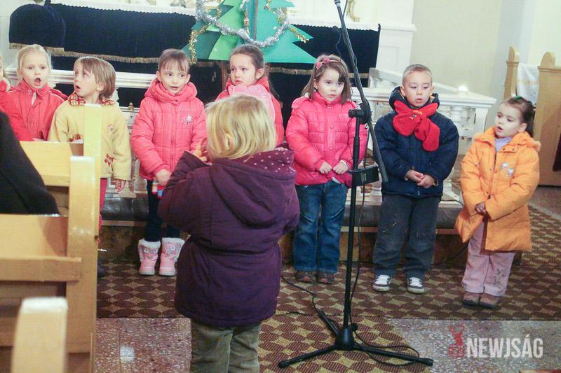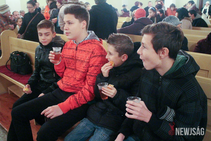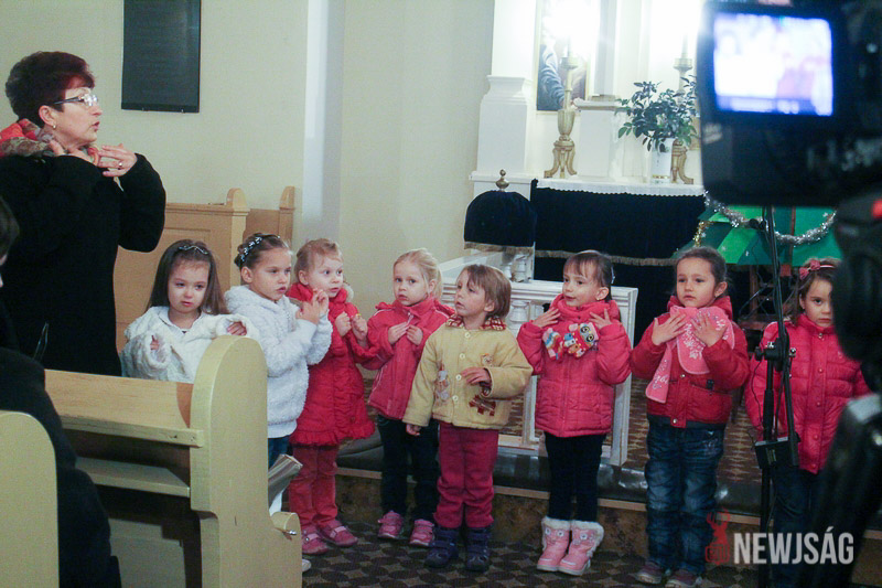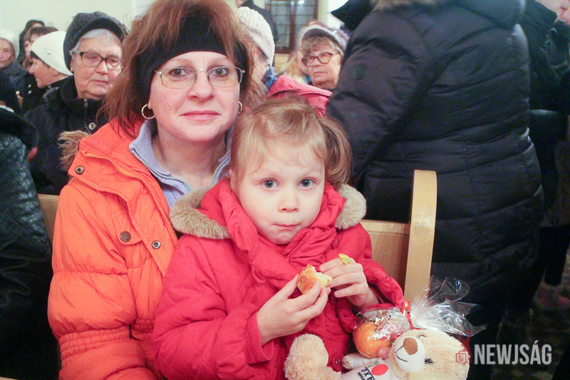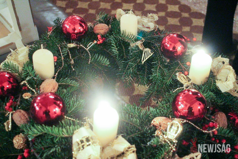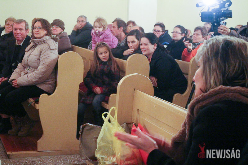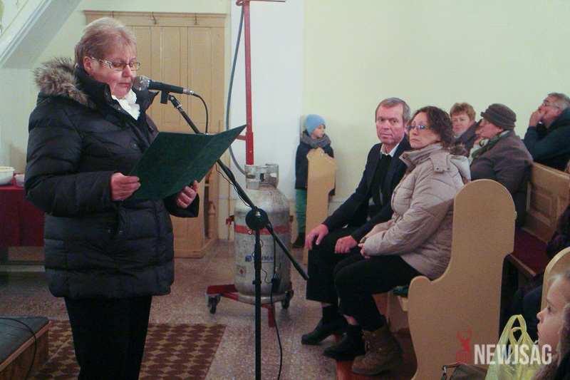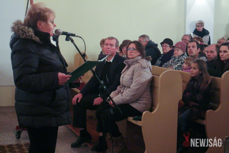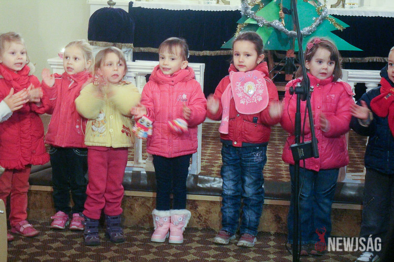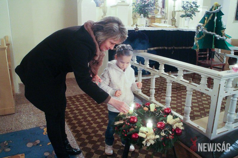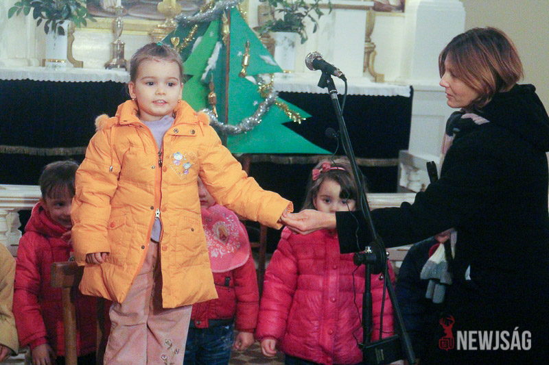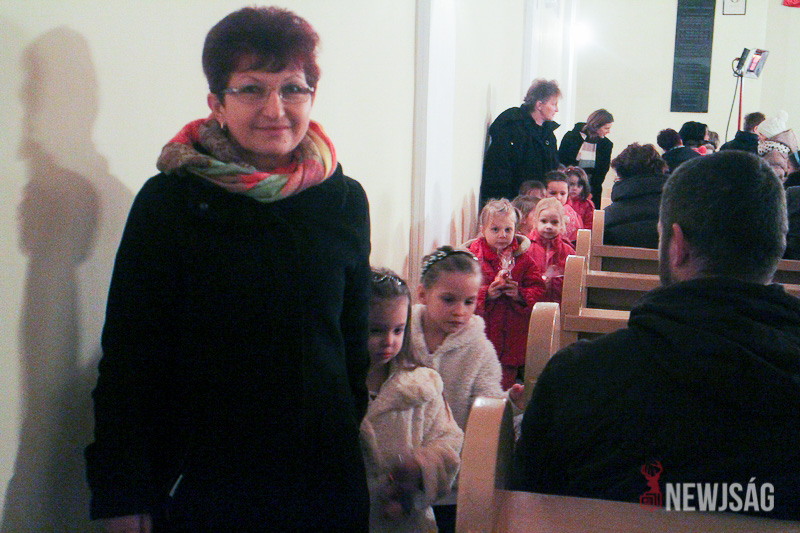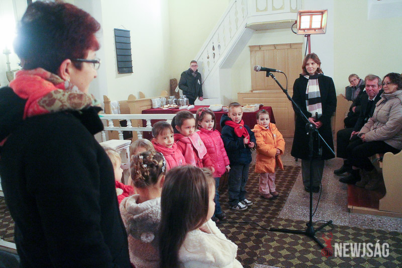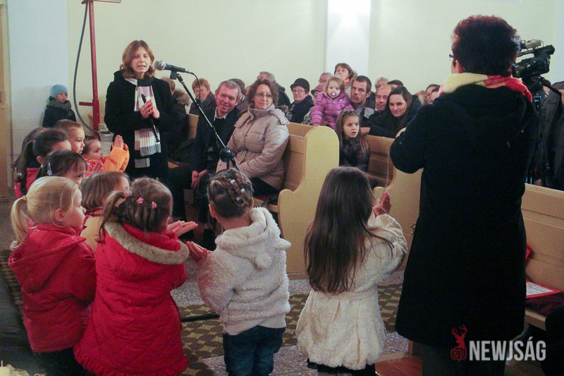 Jansik Györgyné, a Csabacsűdiek Baráti Köre Hagyományőrző Egyesület elnöke köszöntötte az összegyűlteket, majd Kórógyi Angyalka intézményvezető és egy kis óvodás segítségével fellobbanhatott az adventi koszorú második gyertyája. A későbbiekben is a gyerekeké volt a főszerep, akik magyar és szlovák nyelven karácsonyi dalokkal és versekkel tették meghittebbé advent időszakát. A műsor legvégén még egy szék is előkerült, aminek a tetejéről kívánt egy bátor kislány mindenkinek boldog új esztendőt.