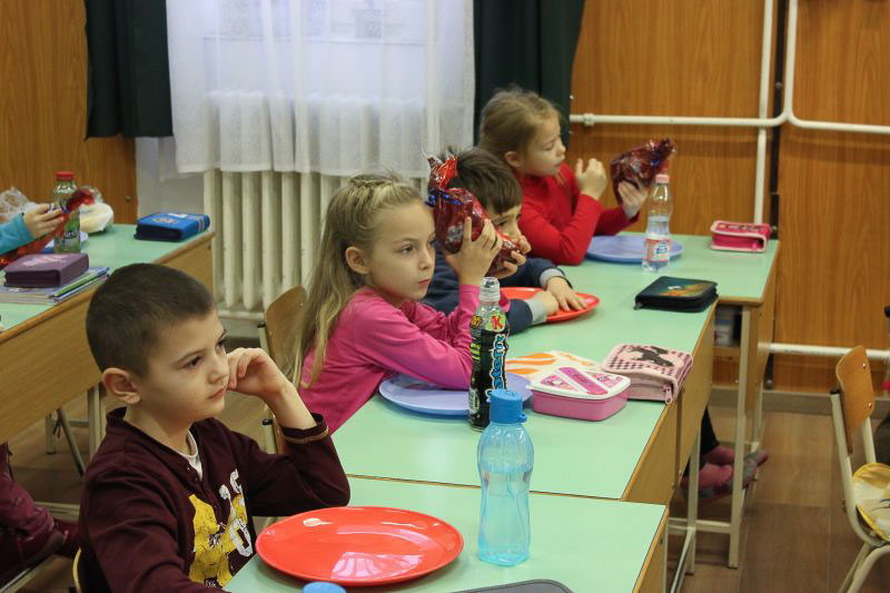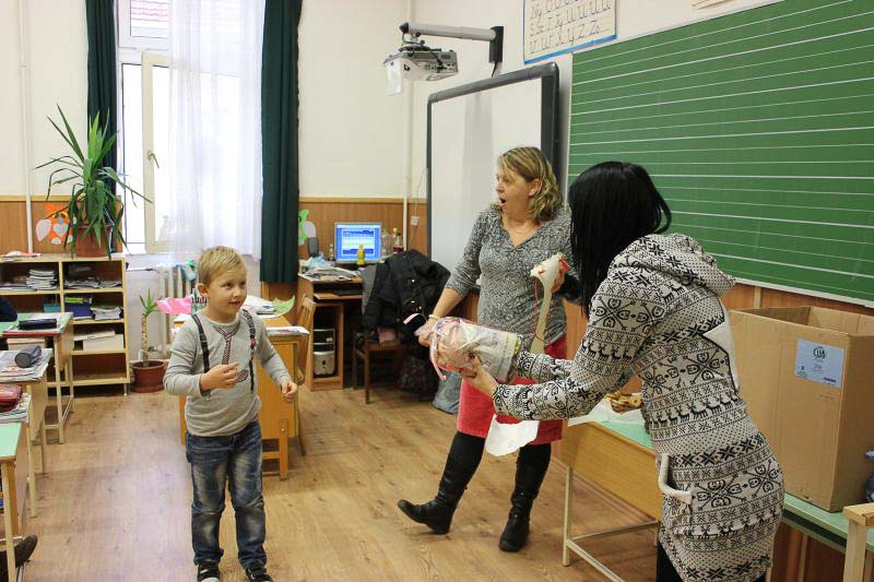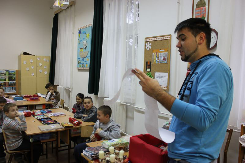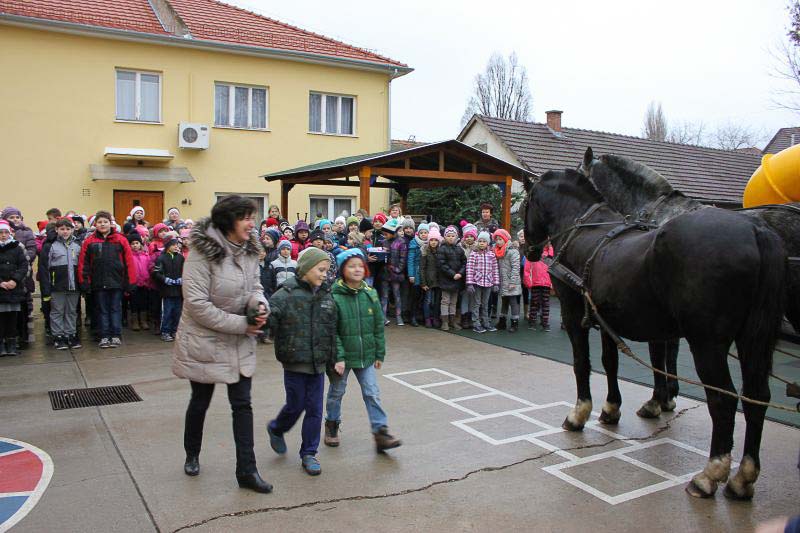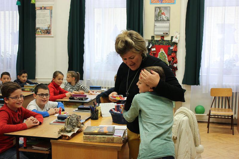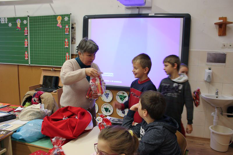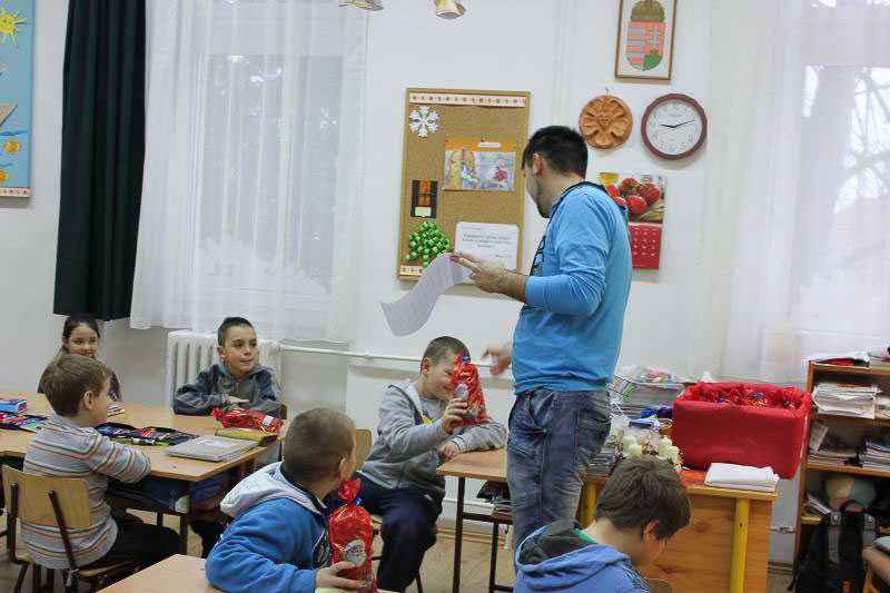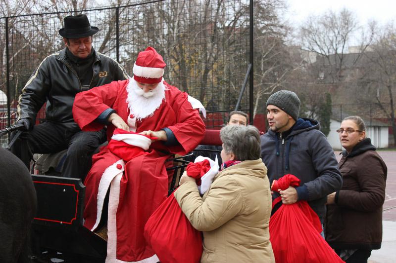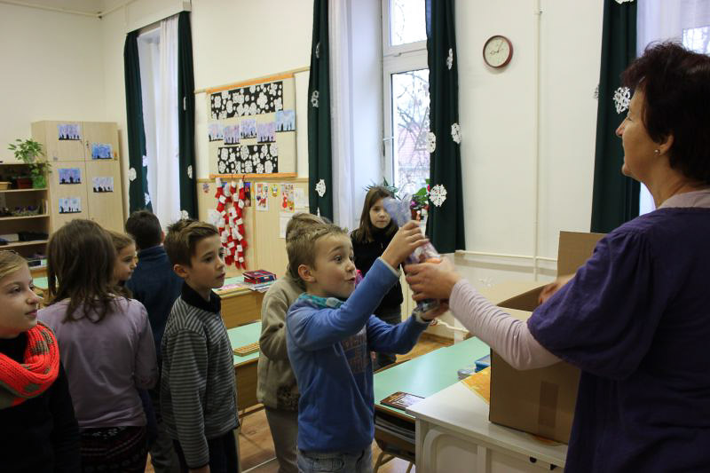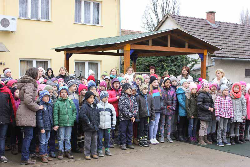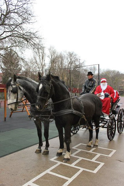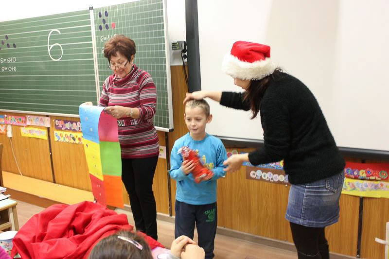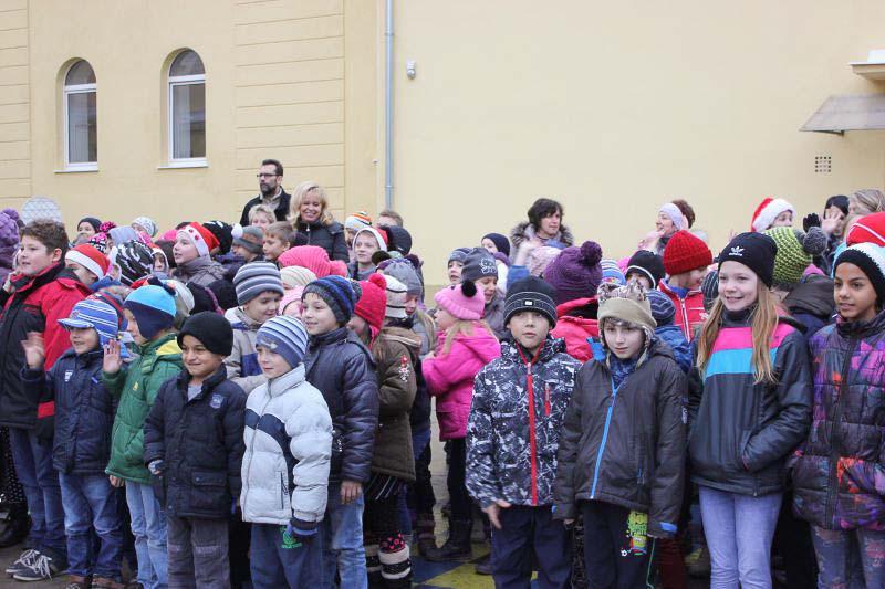 December 7-én ugyanúgy készültek az osztályok az első szünetben az udvarra, mint máskor. Mégis valami izgalom futott végig mindenkin, mert nem lehetett elfoglalni a játszóteret, rendezett sorokban kellett maradnia a gyerekeknek. Elkezdődött a suttogás: Mi lesz itt? Talán jön a Mikulás? Néhány perc elteltével megszólalt a zene. Ekkor már éreztük, hogy valami nagy dolog fog történni. Jól sejtettük, mert amint az alósok elkezdtek énekelni, a távolból feltűnt egy hintó, rajta a piros ruhás Mikulással. Nagyon meglepődtünk, hiszen így még nem érkezett hozzánk. És még ami mögötte volt, sok-sok csomagot láttunk, ami felénk közeledett. Az énekszóért cserébe hatalmas zsákok kerültek le a hintóról, amibe az osztályok ajándékai voltak. Egy szép dallal köszöntünk el Tőle és reméljük jövőre ismét találkozunk.