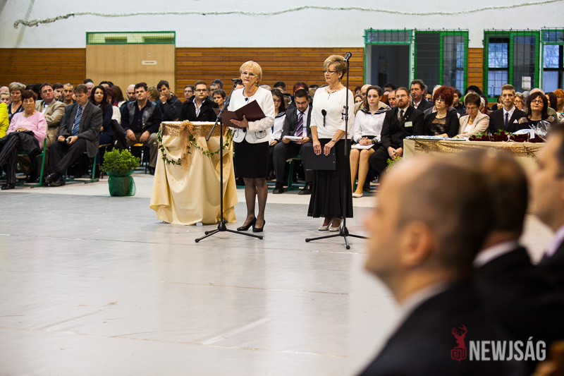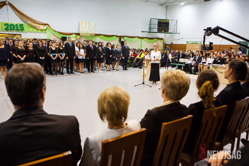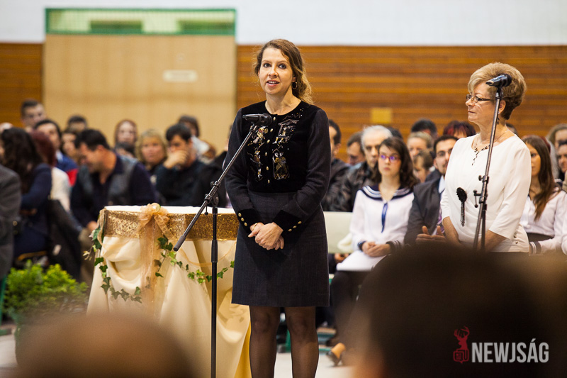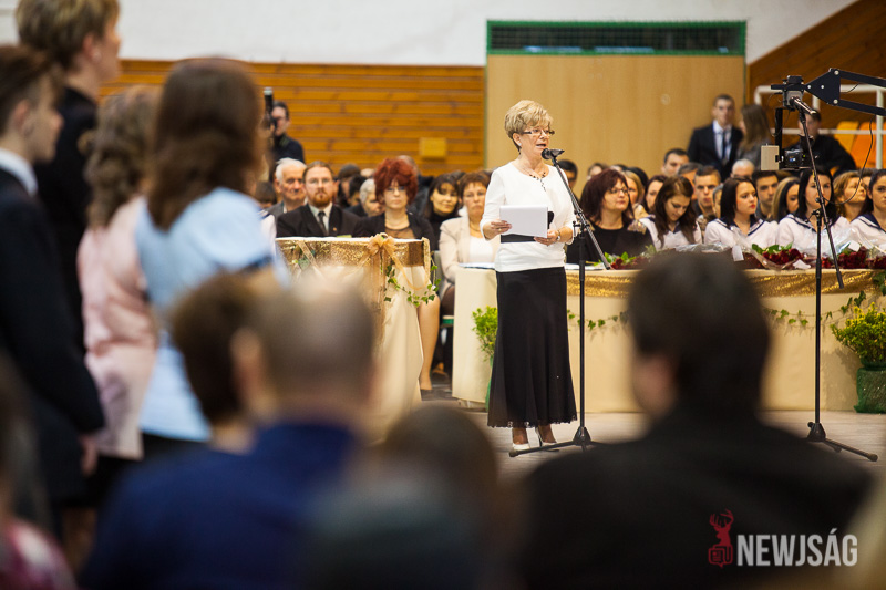 – Kedves Végzőseim! Megéri együtt lenni, megéri egymásra figyelni, megéri egymást segíteni megéri megmutatni szüleiteknek, hozzátartozóitoknak, hogy nem volt hiábavaló az áldozat, amit értetek hoztak az elmúlt 18-20 évben. Ez a pillanat olyan különleges, amit az ember életében egyszer élhet át csupán. E pillanat visszatekintés a közösen eltöltött időre, amit soha nem fogtok elfelejteni. Jó érzés itt állni, s tudni, hogy egy olyan környezet vesz körül benneteket, ahol mindenki tartozik valakihez, s mi itt összetartozunk. Összeköt a közös múlt, és az együtt elkezdett jövő építése – mondta Kohut Andrásné igazgató és kitartást kívánt az előttük álló hat hónaphoz.