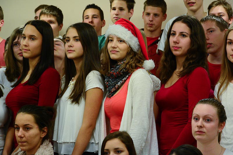 Így történt ez december 15-én is, amikor az alkalmi énekkarok megszólaltatták a népszerű melódiákat. A régi karácsonyi dalok mellett a diákok legnagyobb örömére modern karácsonyi slágerek is szerepeltek a repertoárban.