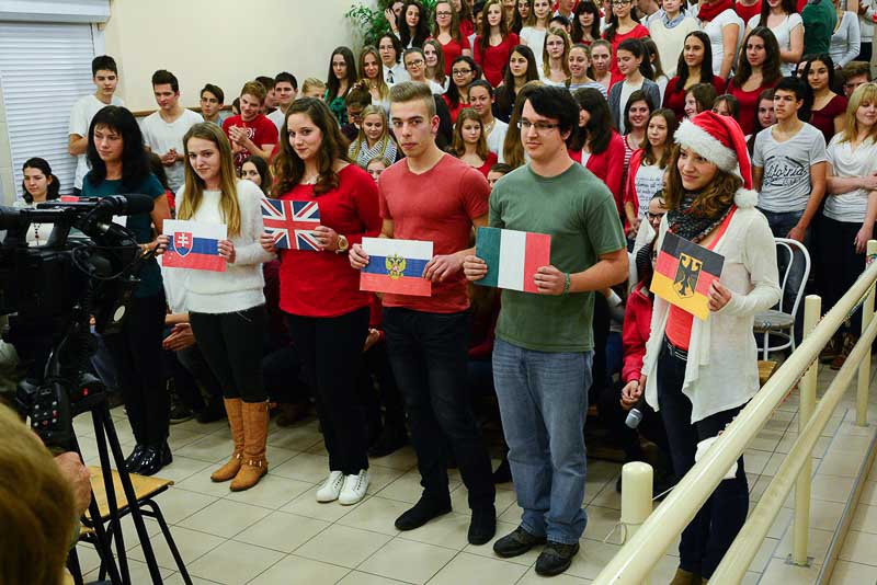 Több mint 20 éve készülünk az iskolában tanult idegen nyelveken felcsendülő karácsonyi dallamokkal az év legszebb ünnepére.