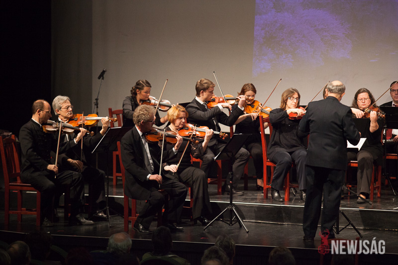 A következőkben két díszvendég következett. Mozart 1779-ben komponált kettős versenynek, az Esz-dúr Sinfonia Concertante hegedűre, brácsára ünnepélyes első tételét Czetner Vera hegedűművész és Várnagy Mihály brácsaművész közreműködésével adta elő a Szarvasi Kamarazenekar.