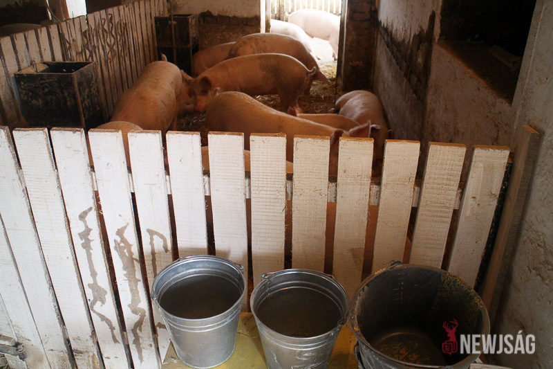 Rövid terepszemlét tartva az is kiderült, az állatoknak nincs panaszra okuk. A 20-25 kilósan odakerült süldők ma már 160-170 kg körül mozognak, de a később érkezettek is verik már a 120 kg-ot. A délelőtti órákban épp Tusjak András volt szolgálatban, aki végzettsége alapján is a jó helyre került. Általános állattenyésztőként és lótenyésztőként ugyanis nagy tapasztalattal rendelkezik ezen a területen, valamint otthon a mai napig foglalkozik sertéstartással.