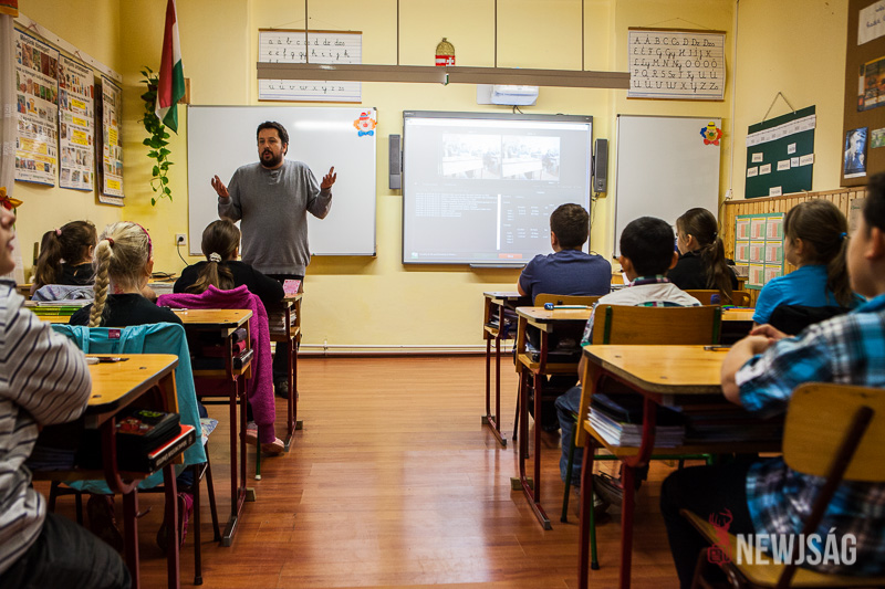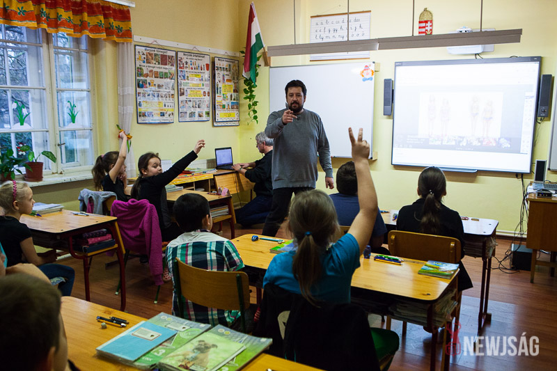 – Mi is tartjuk a lépést a 21. századi követelményekkel, jól felszerelt iskola vagyunk. Az interaktív táblák nálunk is elérhetőek, és szeretnénk azt, hogy minél színvonalasabban tudjuk ezeket használni, ezért vendégoktató segítségével mind pedagógusok, mind diákok megtanuljuk azt, megismerkedünk vele – mondta az első, a környezetismeret óra előtt. A környező iskolákat is értesítették, hogy akiket érdekel, meg tudják nézni –akár a pályára felkészítő tanítóképzőn is– az óra menetét.