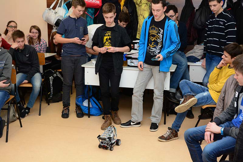Mialatt diákjaink versenyeztek, az itthoniak sem tétlenkedtek. A 9. évfolyamosok rendhagyó fizika óra keretében ismerkedhettek meg az idei évben indult Robot szakkör eddigi munkájával. A szakkör a Nemzeti Tehetség Program támogatásával valósul meg, és a tanulók digitális kompetenciáinak erősítését célozza, a programozás, a technika felé próbálja a tanulók érdeklődését irányítani.