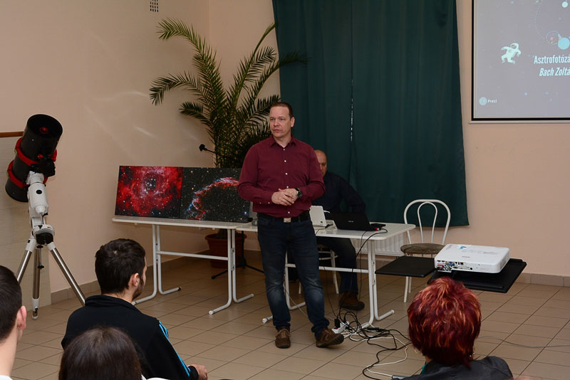 A Reál – hét keretében, minden évben rendhagyó órákat, előadásokat tekinthetnek meg a gimnázium diákjai. Kedden, miközben az Öveges laborban a szokásoknak megfelelően fogadtuk az általános iskolások egy csoportját, Bagi László csillagászati előadásával kezdtük a programok sorát. Az előadó maga is koptatta valamikor iskolánk padjait, most csatlakozott hozzá Bach Zoltán is. Igazából a csillagászat egy speciális területével, az asztrofotózással ismerkedhettünk meg. Az előadók ügyesen mérték a fizikát és a tudományt így a 11. évfolyamos diákok számára érthetően tárult fel ez a különleges hobbi. Megismerkedtünk a fotózás eszközeivel és elméleti alapjaival, majd a fotók elkészítésének részleteivel is. Mindenki számára kiderült, hogy egy – egy jól sikerült fotó elkészítése alapos előkészítést igényel és a kívülálló számára inkább tudomány, mint szabadidős tevékenység.