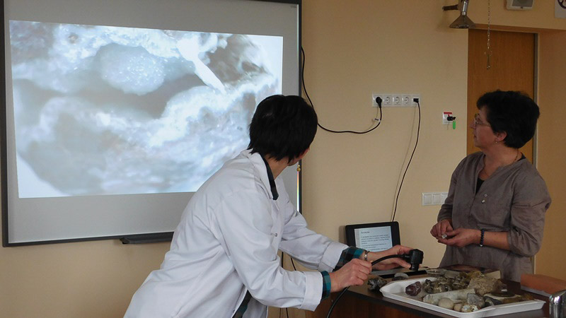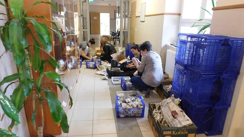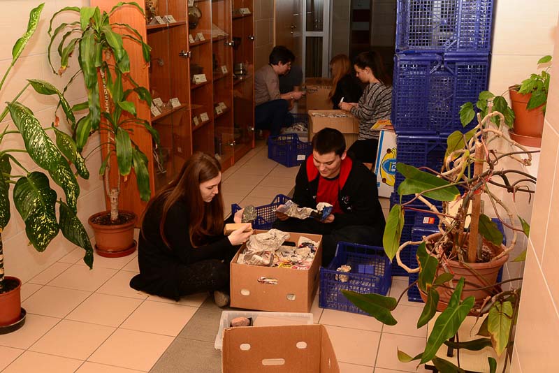 Csütörtökön a földrajz tantárgy került középpontba. A 9.A és 9.B oszály földrajz órái az Öveges laborban zajlottak, ahol lehetőség volt ásvány-, kőzetvizsgálati gyakorlatok végrehajtására. Délután az iskola ásvány- és kőzetgyűjteményének rendezésére került sor. A költözködés óta kartondobozban tárolt gyűjtemény teljes kicsomagolására és rendszerezésre került sor. A munkában Ábrahám Rella, Dombi Bettina, Liszkai Noémi és Pribelszki Zsófia a 9.B osztályból és Sebők László a 9. A osztályból vett részt. Sikerült a gyűjteményt a tároló szekrényben, illetve a további tárolást biztosító műanyag ládákban, megfelelő módon elhelyezni.