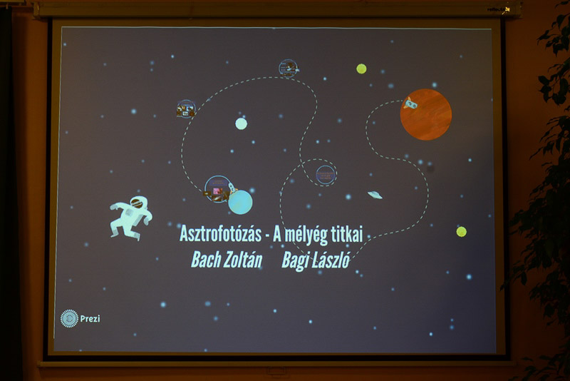 A Reál – hét keretében, minden évben rendhagyó órákat, előadásokat tekinthetnek meg a gimnázium diákjai. Kedden, miközben az Öveges laborban a szokásoknak megfelelően fogadtuk az általános iskolások egy csoportját, Bagi László csillagászati előadásával kezdtük a programok sorát. Az előadó maga is koptatta valamikor iskolánk padjait, most csatlakozott hozzá Bach Zoltán is. Igazából a csillagászat egy speciális területével, az asztrofotózással ismerkedhettünk meg. Az előadók ügyesen mérték a fizikát és a tudományt így a 11. évfolyamos diákok számára érthetően tárult fel ez a különleges hobbi. Megismerkedtünk a fotózás eszközeivel és elméleti alapjaival, majd a fotók elkészítésének részleteivel is. Mindenki számára kiderült, hogy egy – egy jól sikerült fotó elkészítése alapos előkészítést igényel és a kívülálló számára inkább tudomány, mint szabadidős tevékenység.