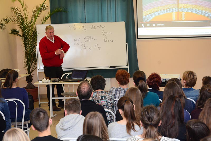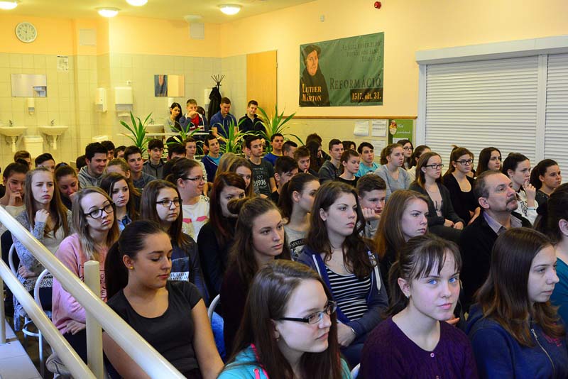 Szerdán a kőolaj nyomában a felszín alá tekintettünk Simon Balázs olajmérnök segítségével. A 9. évfolyam diákjai megismerkedhettek a szénhidrogének keletkezésével és a kutatás és feltárás alapvető problémáival. Az mindenki számára kiderült, hogy a kutatófúrások különleges technikai felkészültséget igényelnek, és hasonlóan különleges problémák merülhetnek fel. Végignéztük, hogy a fábiánsebestyéni gőzkitörést, hogyan számolták fel a külföldi szakértők. Láthattuk, hogy a berendezéseket a külső erők is veszélyeztetik. Az iraki homokvihar képei igazán félelmetesek voltak. Az is világossá vált, hogy ez a szakma lehetőséget ad arra is, hogy a kutatók külföldön vállaljanak munkát. Ez kivételes lehetőség más kultúrák megismerésére. Láthattuk a szíriai történelmi emlékeket, amikor még nem dúlta háború a területet, vagy azt hogyan ünnepelnek a pakisztániak a kutatófúrás sikere láttán. Ha valaki kedvet kapott a szakmához, annak irány a miskolci egyetem.