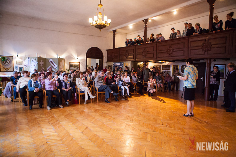 – Úgy kezdődött ennek a kiállításnak az ötlete, hogy gondoltak egy merészet és szépet, hogy mi lenne akkor, ha országosan meghirdetnénk, hogy gobelin és keresztszemes témában pályamunkákat várnánk, és egy díjazásos versenyt rendeznénk – árulta el a szakkör vezetője. A gondolatot tett követte, aminek a következtében vasárnap megtelt a Tessedik Sámuel Múzeum díszterme.