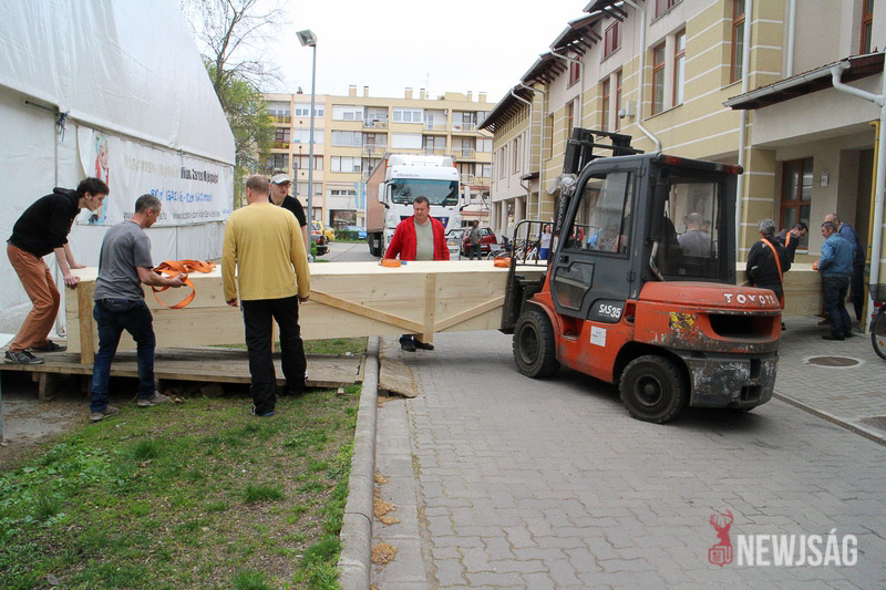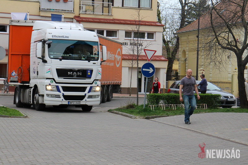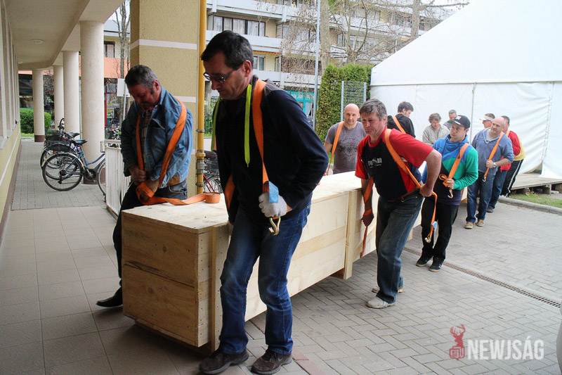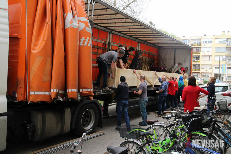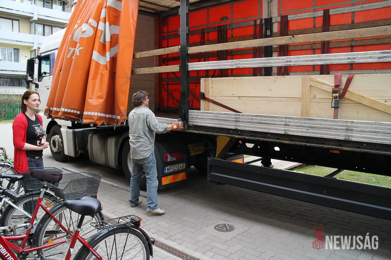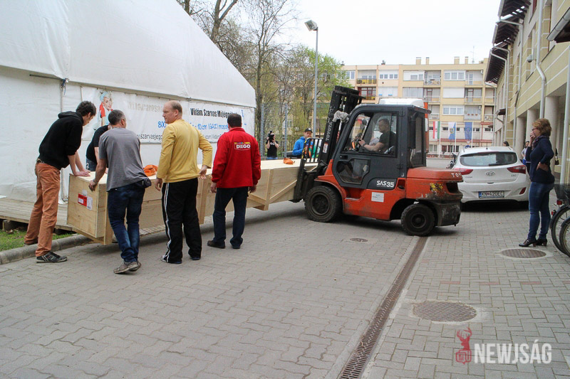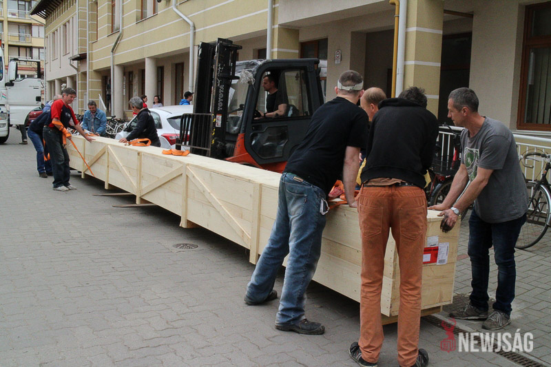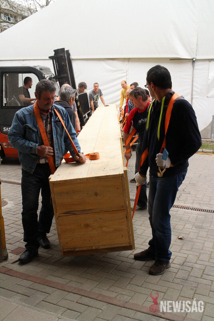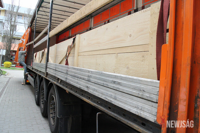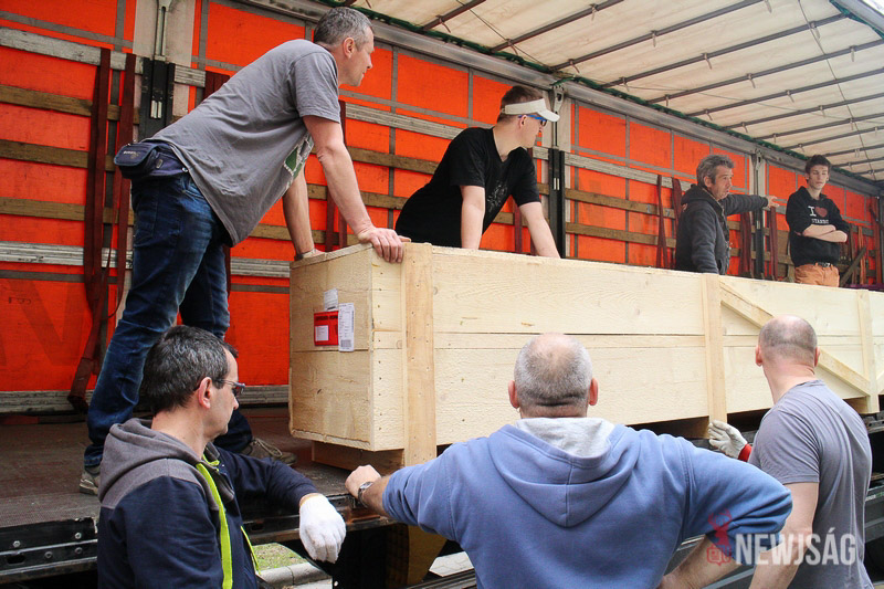 – Kb. 10 méter hosszú és 70 cm széles, és úgy kell vele bánni, mint a hímes tojással – adott néhány gyors instrukciót Kugyeláné Décsei Mónika a kamion érkezése előtti utolsó percben.
