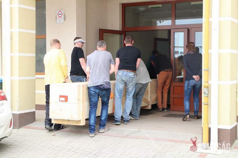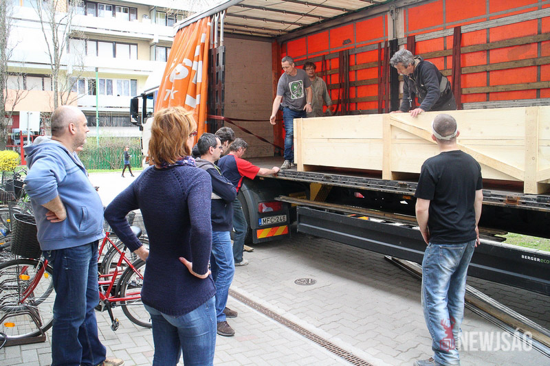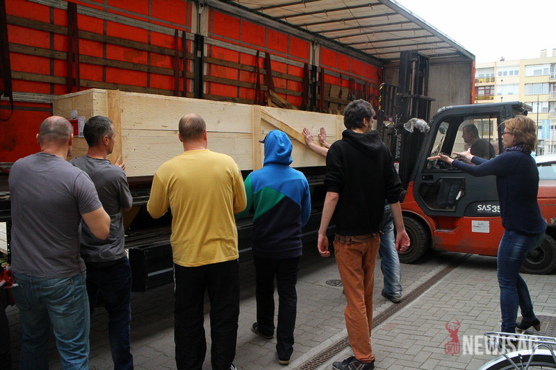 A célállomástól a színházteremig vezető, kb. 30 méteres útszakasz azonban meglehetősen göröngyösnek bizonyult. A logisztikát nehezítette a rakomány sérülékenysége is, ami egy rossz mozdulat esetén beláthatatlan károkat eredményezhetett volna. Némi gondolkodási idő után a csapat targoncával felvértezve folytatta a munkát. Az erőfeszítéseket siker koronázta, igaz, egy helyszínen parkoló autó is komoly kihívást okozott a végleges irány elérésében.