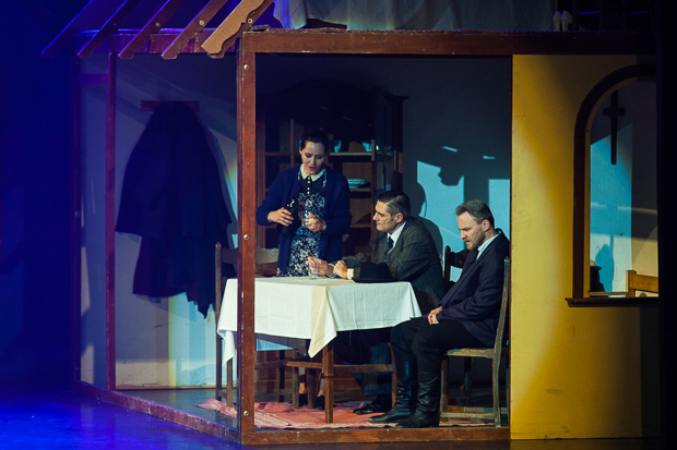 A történelem szinte minden része megjelenik a darabban: a kényszermunka, a kitelepítés, családok szétszakadása, szökés a kényszermunkatáborból, a hídon való átjutás Magyarországra, vagy menekülés a Dunán csónakkal, a „reszlovakizáció”. A döbbenet, a kétségbeesés, a reményvesztettség, az elkeseredettség. A falu lelkésze Gál István (Varga Miklós), aki próbálja segíteni a magyarokat, pontosan tudja, sorsa nem lehet más, csak a halál, mégis vállalja tettének következményeit. Ahogy a kényszermunkából megszökött két fiatal is csak reménykedhet, hogy átjut a határon – az egyik Molnár fiúnak ez nem sikerül. Az otthon maradottak sem érzik már otthonuknak szülőfalujukat, a fiatal pár a babával útra kel a folyón át, csónakban. Tóth Béla, aki lelkileg nem tudja feldolgozni azt, hogy családja, barátai elmentetek, egyedül maradt, ráadásul a lelkész halálában is része van, véget vet életének. Több megható, szívszorító jelenet játszódik a színpadon. A darab végkicsengése mégis a remény, az összetartozás.