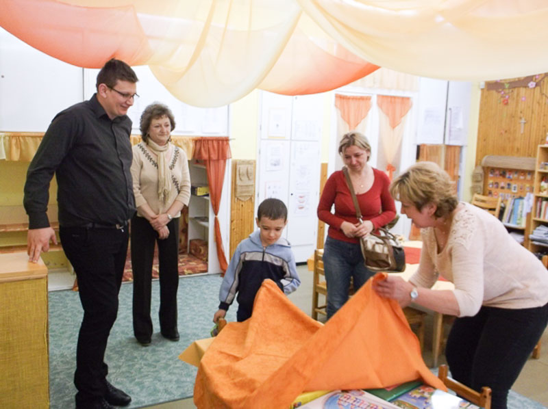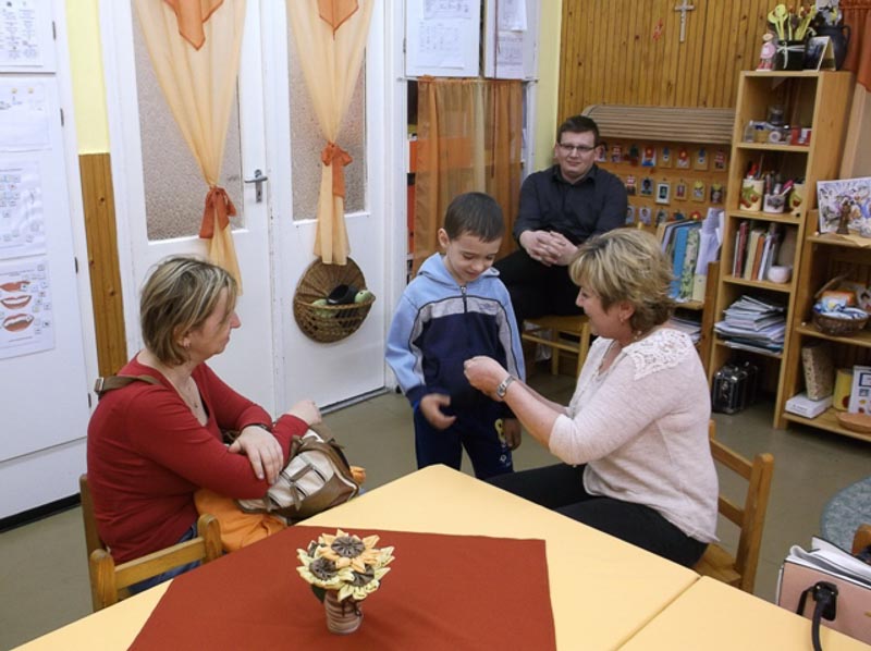 A fenti mottóval foglalta össze sikeres pályázati zárását Szalbotné Kovács Mária szakvezető óvodapedagógus, fejlesztőpedagógus, a GFF Szarvasi Gyakorlóóvodájának kiváló nevelője. A választott mottó annak a Nivea “Karolj fel egy családot” pályázatnak az apropóján született, amelyben a tehetséggondozó pedagógusok a szülőket támogatva, a tehetségígéret kisgyermekek képességeinek jobb kibontakoztatásáért ösztöndíjban részesülhettek. A szerencsés, támogatott gyermek Szőke Barnabás Cseresznye csoportos tehetségígéret óvodásunk 2016. április 4-én Bíró Gyula és Huszár Istvánné intézményvezető jelenlétében vehette át édesanyjával az ötvenezer forint értékben összeállított fejlesztőjáték csomagot. Az ajándékok átadását követően a tehetséggondozó pedagógus a szülővel is megismertette a játékok használatát, annak képességfejlesztő hatásait, hogy az együtt játszás élménye biztosított legyen otthon is, hiszen ez a pályázat sikeressége szempontjából különös fontossággal bír. Szalbotné Kovács Mária óvodapedagógus elmondta, hogy a játékok kiválasztása Barnabásra szabottan történt, az ő érdeklődésének, képességeinek megfelelően állította össze a csomagot. A pályázat célja volt, hogy olyan óvodapedagógusok kapják az ösztöndíjat, akik a fejlesztő és tehetséggondozó pedagógiai munkájukban különös hangsúlyt fektetnek a tehetségígéret gyermekek támogatása mellett a családdal való közös gondolkodásra, és közös fejlesztési célok megvalósítására, elérésére.