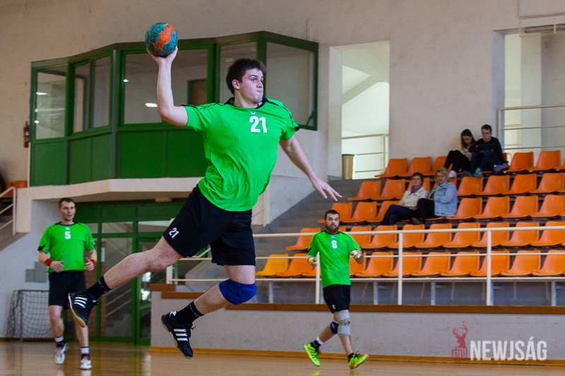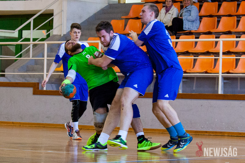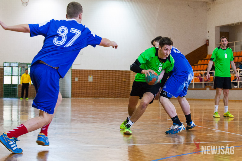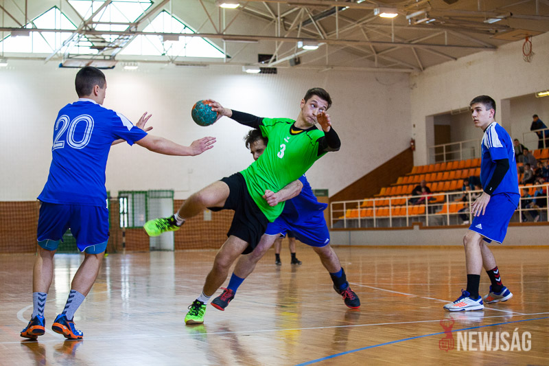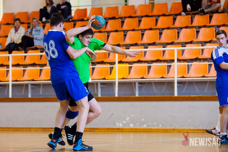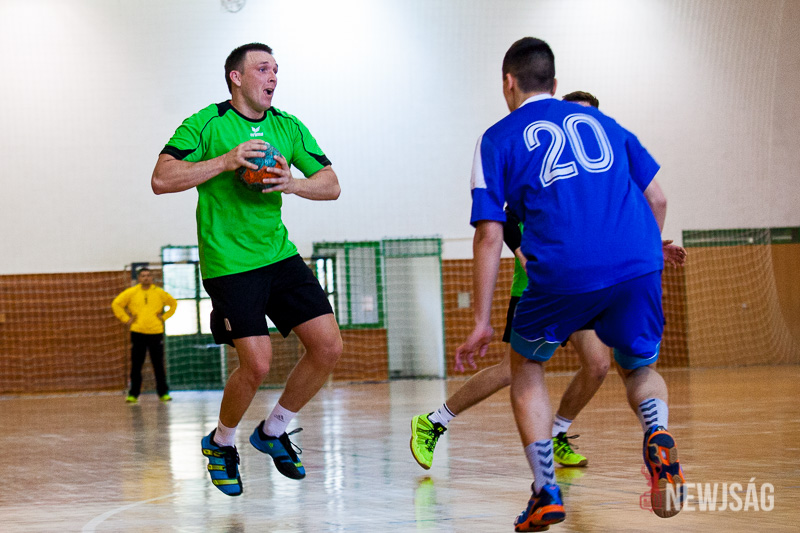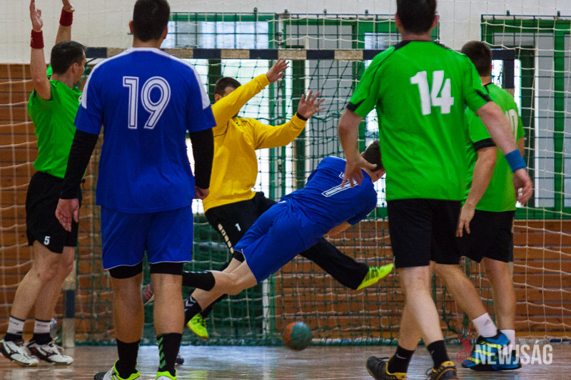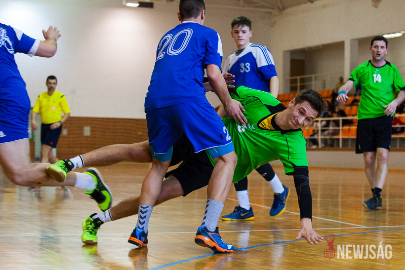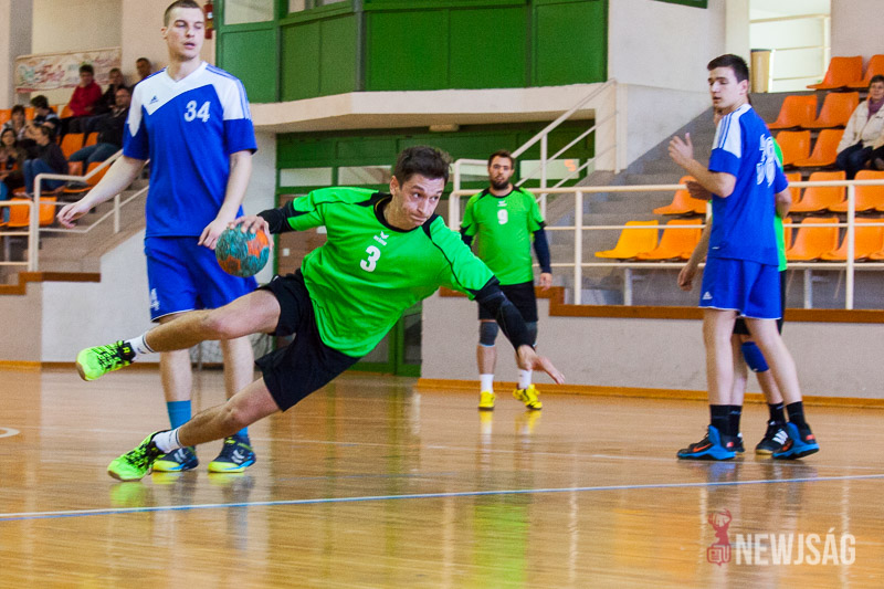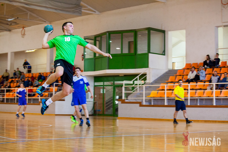 Csupán az első percben volt egyenlőség a két csapat között egy gyors gólváltásnak köszönhetően, a folytatást viszont gyorsan a maga javára billentette a sokkal fürgébb, mint védekezésben és támadásban is összeszokottabb vendégcsapat. A 11. percre már 1-8 volt az eredményjelzőn, és a különbség a félidő hajrájáig meg is maradt (3-10, 7-14), igazából veszélyt kapura csak Lestyan-Goda átlövés góljai, illetve Hanzel Zoli elfutásai és szélső ziccerei jelentettek. A félidő végére kicsit megtört a csabai fiatalok lendülete és néhány ellopott labdából sikerült csökkenteni a különbséget (15-20).