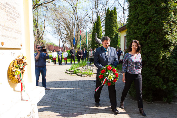 Molnár József polgármester történelmi visszatekintéssel kezdte ünnepi beszédét. Egészen az I. világháborút lezáró Párizs környéki békéig ment vissza, amikor megalakult Csehszlovákia. Ez az állam 1938-ban fel is bomlott a Szudéta területek Németországhoz csatolásával, ill. az első bécsi döntéssel, ami a Felvidék déli részét visszaadta Magyarországnak. A második világháború után az 1938 előtti határokkal ismét létrejött Csehszlovákia. Alig űzték ki a területekről a németeket, a Beneš-dekrétumok máris korlátozták a németek és a magyarok jogait. 45-50 ezer magyart deportáltak a csehországi területekre kényszermunkára. A magyarok helyzetének megoldását szovjet nyomásra lakosságcserével oldották meg, ami 1947 április 12-én vette kezdetét.