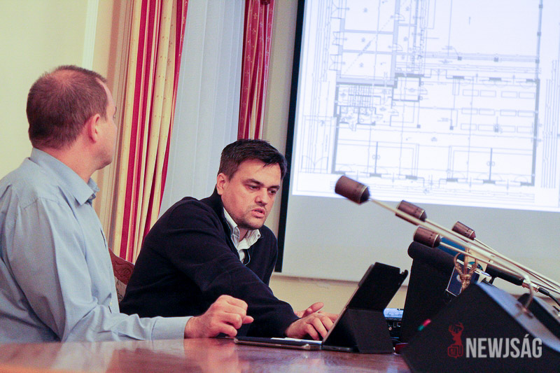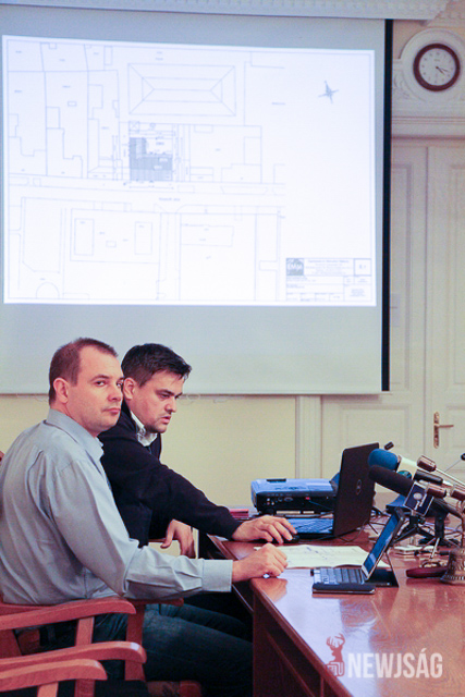 Lukácsi László főépítész részletesen ismertette a piac szomszédságába tervezett komplexum legfőbb paramétereit. Előnyként értékelte a telek elhelyezkedését, utalva az forgalmas utcára, ill. a piaccal való közvetlen összeköttetésre.
