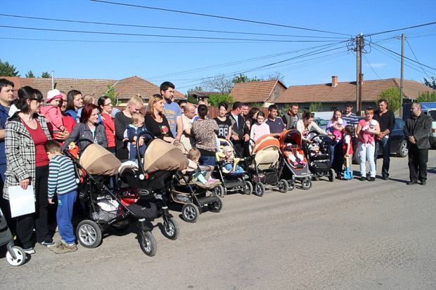 – Szép gesztus a település részéről ez a hagyomány. Jelképesen előrevetítve azt szeretnék, hogy ne csak a fák, hanem a gyerekek is itt maradjanak – mondja sűrű lapátolás közepette az édesapa.