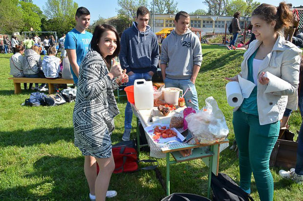 Azok a diákok, akik nem a bográcsok körül forgolódtak darts és asztalitenisz versenyben mérhették össze tudásukat. Eckert Péter iskolánk jelenlegi, és Papp Zsolt iskolánk volt diákja színvonalas bemutatót tartott az udvaron felállított sreet work pályán. Fiúk és lányok elismerő tapsokkal jutalmazták az akrobatikus mozdulatokat, és a gyönyörűen kidolgozott izmokat.