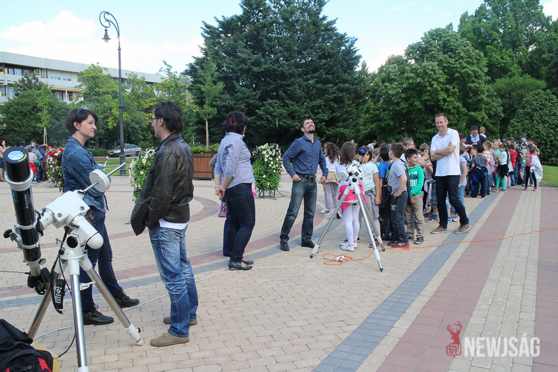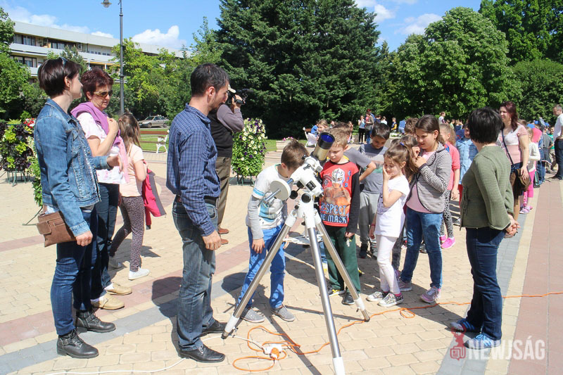 – Nagyon vártam ezt a napot, bevallom, kicsit izgultam is, kíváncsi vagyok, mit látok majd a távcsőben – árulja el a tíz éves Ádám, aki a Szlovák Általános Iskolából sétált ki a rendezvény helyszínére.