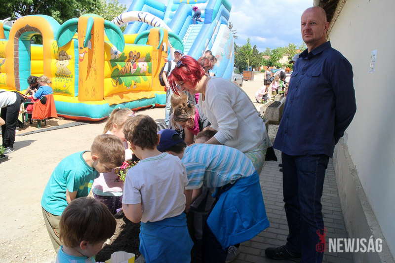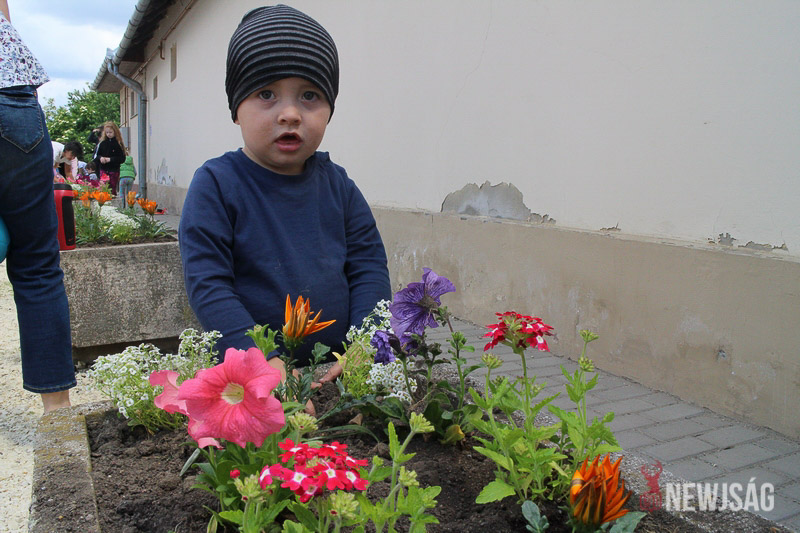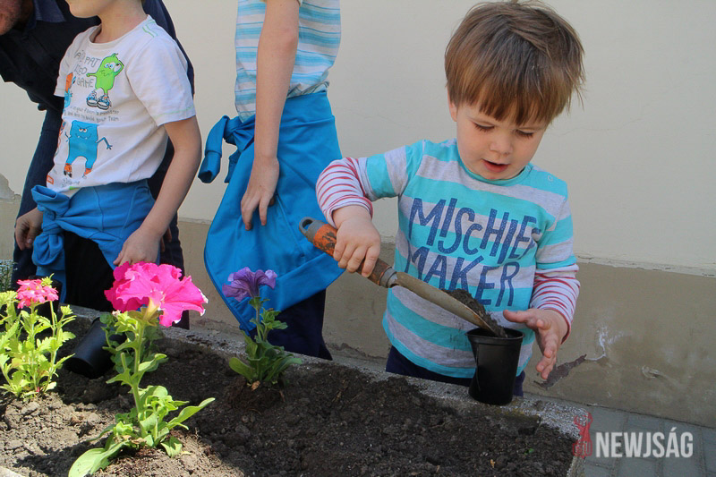 – Intézményi szinten is fontosnak tartjuk a szemléletformálást és a környezet megóvását. Zöld óvodaként nemcsak a jeles napokon, hanem a hétköznapokon is teszünk ennek érdekében: saját kis veteményt alakítottunk ki, és gondozzuk a virágokat az udvarunkon. A gyerekeket a természet szeretetére és védelmére neveljük, amiben ők maguk is aktívan részt vehetnek – árulta el Tóth Ágnes óvodapedagógus, miközben szorgos segítővel együtt egyre színesebb virágkompozíciókat alakít ki.