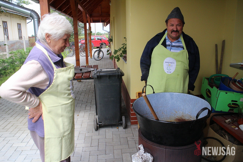 – Jó látni, hogy megmaradtak a hagyományoknál. Szilvalekvárt főznek, befőznek, disznót vágnak, sütnek-főznek, mint ahogy a régiek tették. A mai fiatalok már nem üldögélnek 5-6 órát a lekvár mellett. A hangulat mindig jó, szívesen jövünk – ecseteli, miközben a háttérből önfeledt csevej, és fel-feltörő nevetések szűrődnek be a szobába.