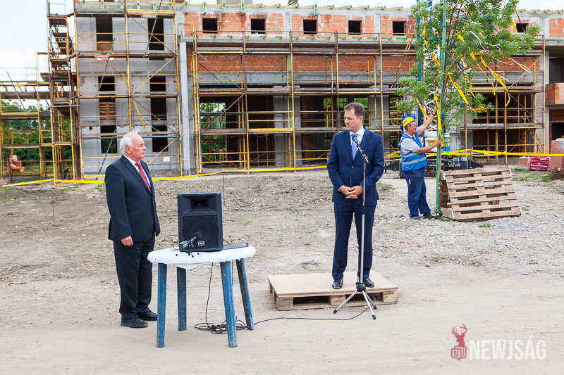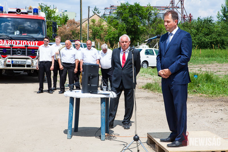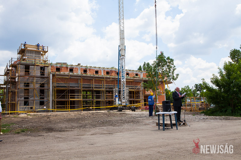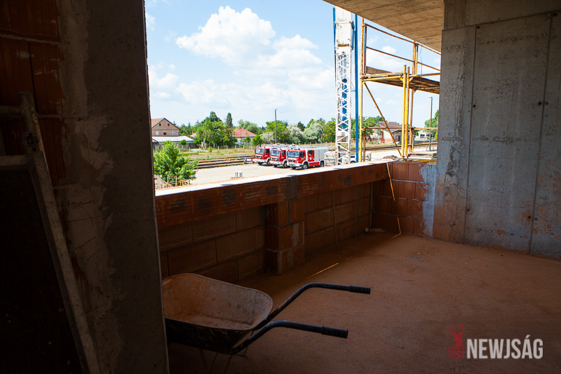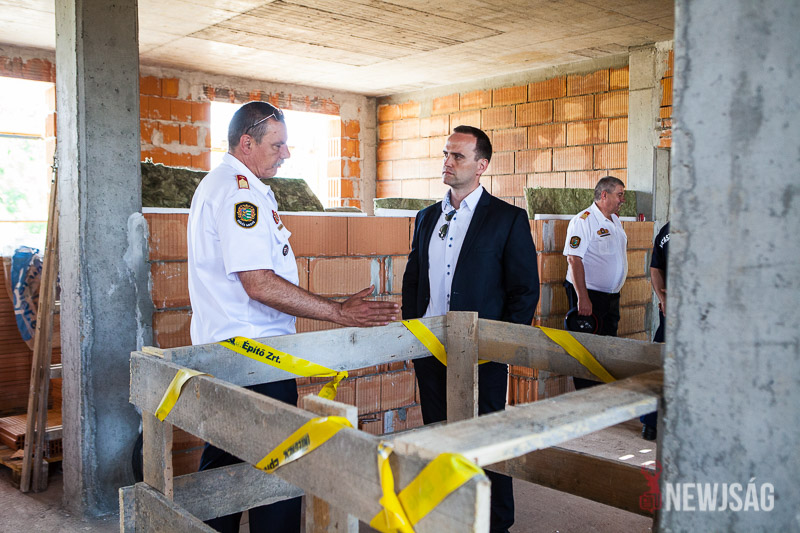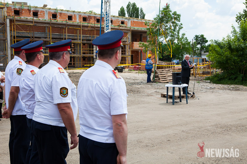 – A szarvasi hivatásos tűzoltóság elhelyezése céljából épülő új tűzoltólaktanya beruházása ma egy kiemelkedően fontos állomásához érkezett. A tűzoltólaktanya épületének tartószerkezete elérte a legmagasabb pontját. A fedélszék összes szerkezeti alkotórészét elhelyeztük, és az deszkázásra készen áll. Továbbá elkészítettük a 14 méter magas tömlőszárító vasbetontornyot is, tehát teljesen szerkezetkész az épület – mondta Bődi János csütörtökön az új tűzoltólaktanya bokrétaünnepségén.