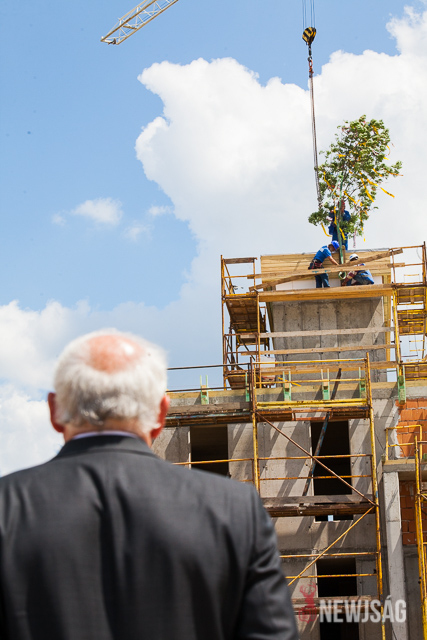 Dankó Béla országgyűlési képviselő és Tóth Tibor dandártábornok köszöntője, valamint a nemzeti színű szalagok felkötése után a bokréta egy daru segítségével felkerült az épület legmagasabb pontjára. Az ünnepi esemény bejárással folytatódott, amin az építők bemutatták a szerkezetkész épületet a leendő lakóknak.