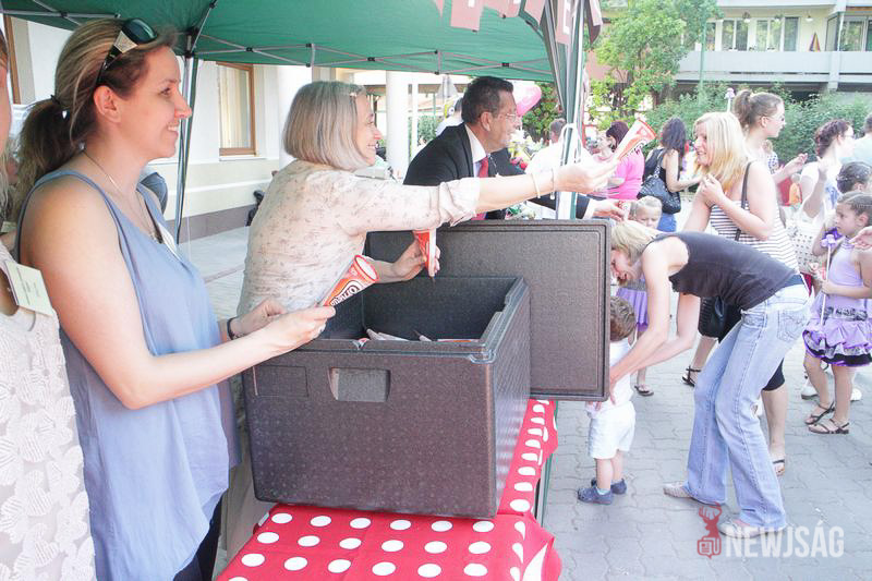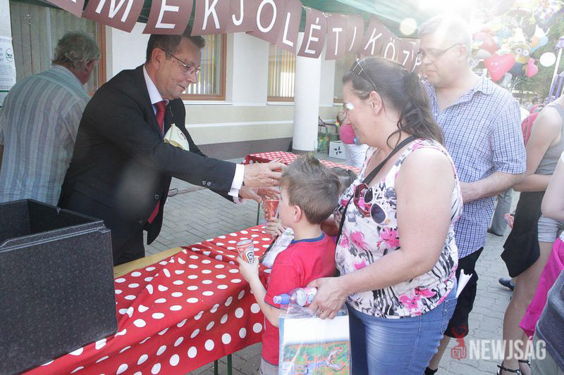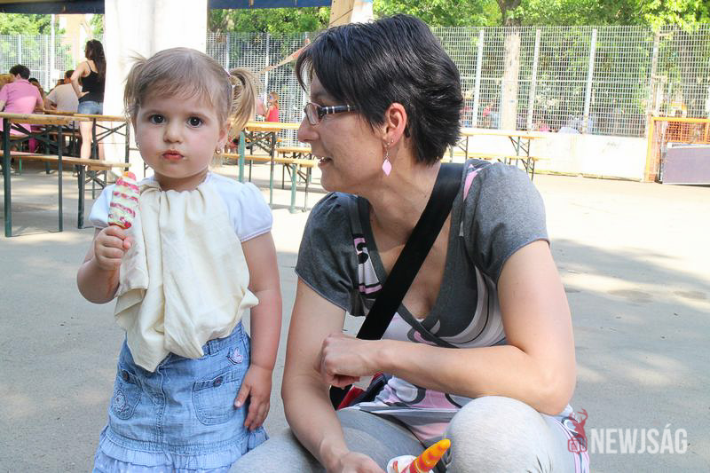 Az intézmény mögötti részen „cukrosbácsik” állták az érkezők útját, és mindenkinek a kezébe egy-egy jégkrémet nyomtak. Babák Mihály polgármesternek és Kiss Attila önkormányzati képviselőnek ezúttal nem kellett sokáig győzködni a helyieket, a rekkenő hőségben csak kevesen tudtak ellenállni a hűsítő nyalánkságnak.