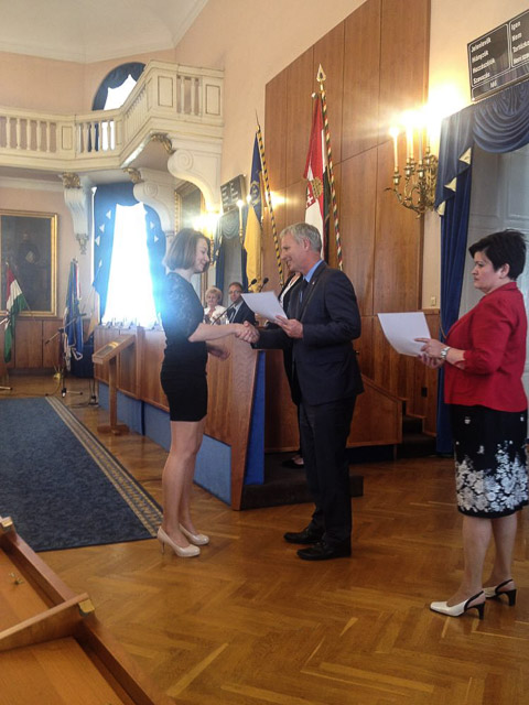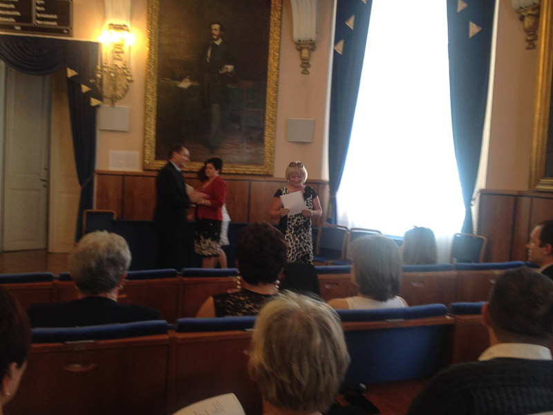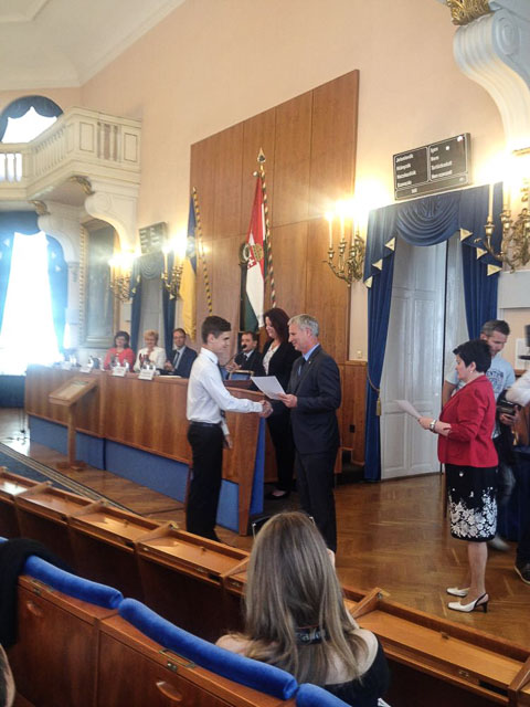 Az ünnepi köszöntők után a díjazott tanulók átvették az államtitkár úrtól a díjakat, felkészítő tanárok pedig a köznevelési elnökhelyettes úrtól az emléklapokat.
