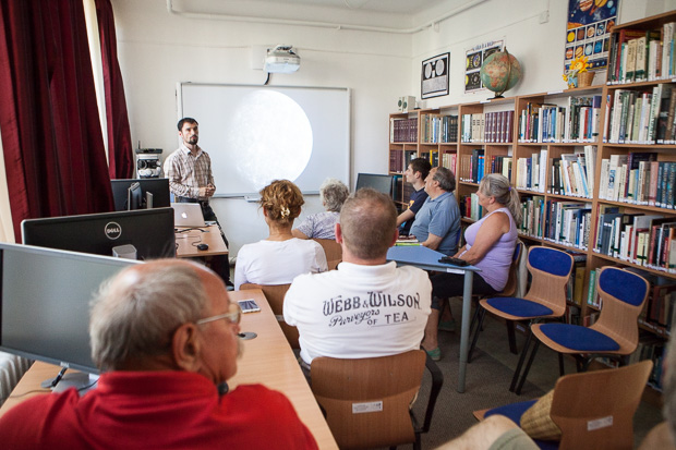 Legutóbb, még május végén egy laza, képnézegetős délutánt tartottak “A Világegyetem nagy felbontásban” címmel a szarvasi amatőrcsillagászok a Városi Könyvtárban. Szklenár Tamás előadásában egy kis történelemmel kezdődött szabad szemmel, ill. a kezdetleges távcsövekkel történt megfigyelésektől kezdve egészen a legmodernebb eszközökkel történt felvételekig. Áttekintették a Naprendszer tagjaihoz, a Merkúrhoz, a Marshoz, a Plútóhoz, és a Szaturnusz indított küldetéseket, ill. azok képtermését.