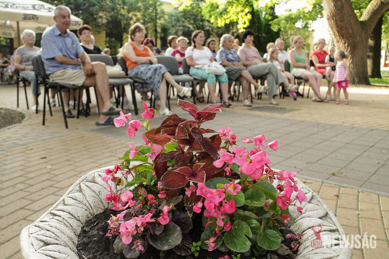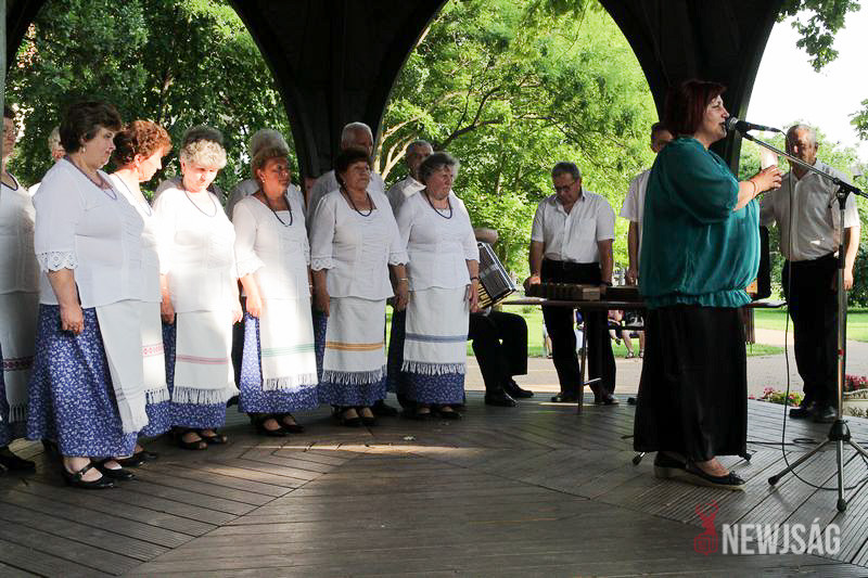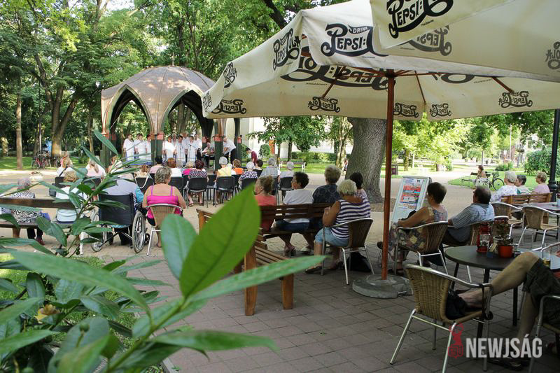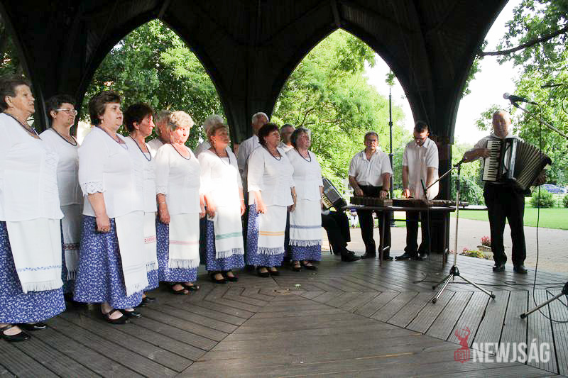 Jól megfér egymás mellett a sport és a kultúra. Mi sem bizonyítja ezt jobban, mint a június 22-i Magyarország-Portugália Eb-rangadó, ami a sportág rajongói számára minden programot felülírt. Volt, aki a Romkocsmát választotta színhelyül, ahol nagyképernyőn keresztül követte végig az eseményeket. Alig néhány méterrel arrébb ellenben, a Zenepavilonnál „Kis esti zenére” hangolódott a közönség. A mérkőzés kezdetét jelző sípszóval egyszerre a Csabacsűdi Hagyományőrző Citerazenekar és Népdalkör is dalra gyújtott, és környékbeli gyűjtésekből származó csokorral örvendeztette meg a hallgatóságot.