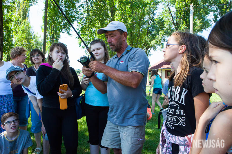 Erdei Attila horgásztáborról horgásztáborra járva népszerűsíti a sporthorgászatot. Szarvasra az olvasótábor főtámogatója, a Víz-Hal-Ember Közhasznú Alapítvány meghívására érkezett. Tíz óra tájban már egy csomó gyerek figyelte, hogy mit csinál egy profi horgász. Érdekes, hogy a lányok érdeklődőbbnek tűntek, mint a fiúk, akik viszonylag egykedvűen figyelték Erdei Attila mozdulatait.